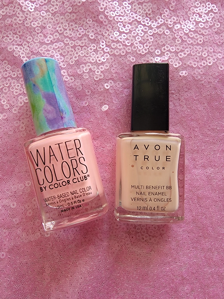 Giving away a set of two nail polishes. One is Avon True Colour Multi Benefit BB Nail Enamel, and the other is Watercolors by Color Club. Both bottles are partially used, but still have lots of life left!