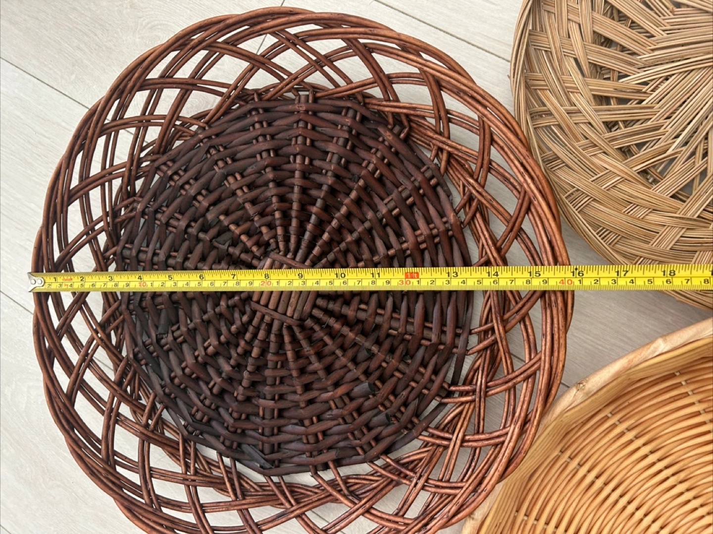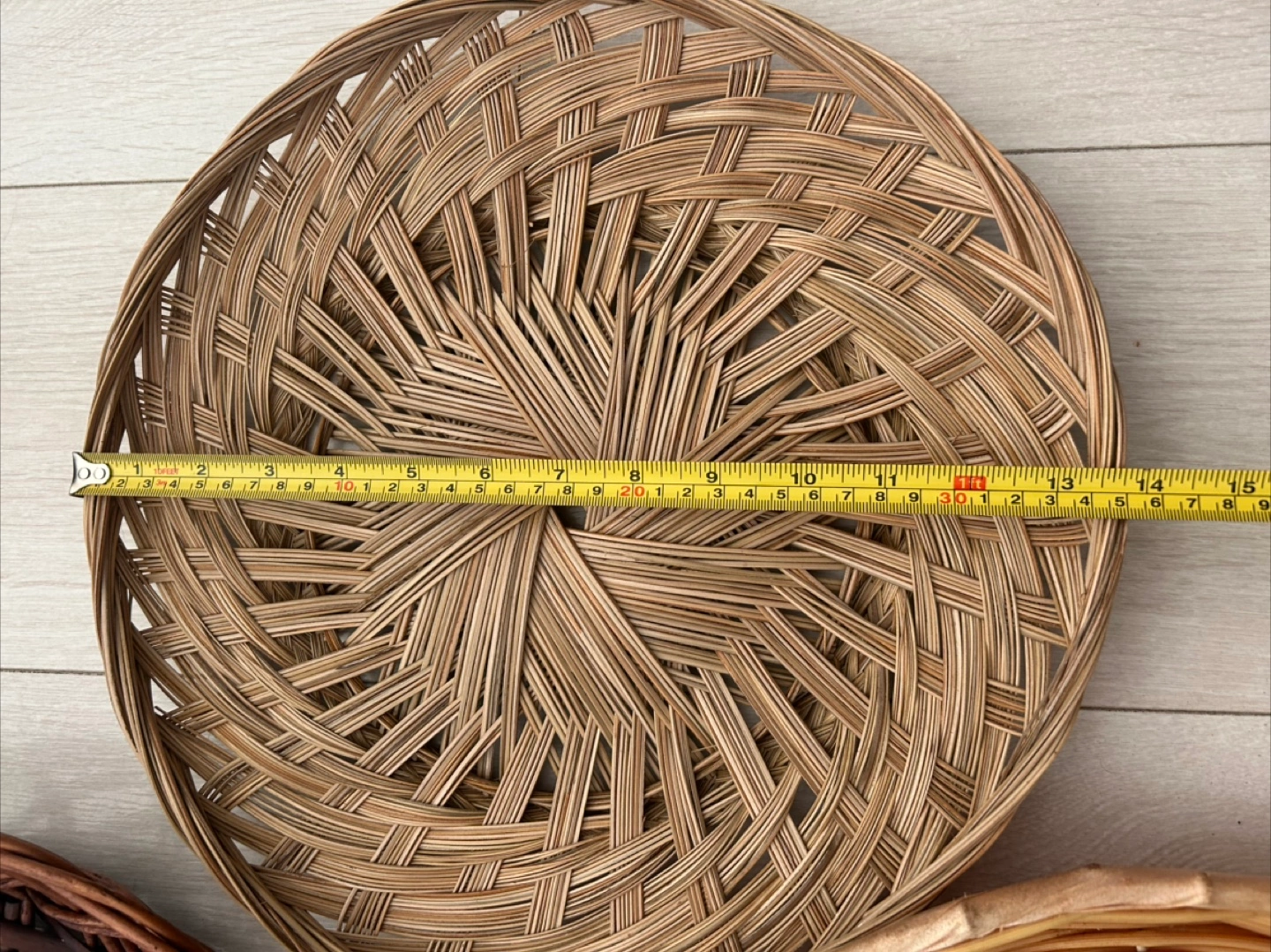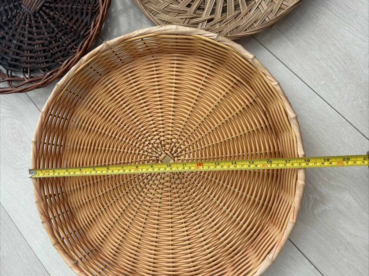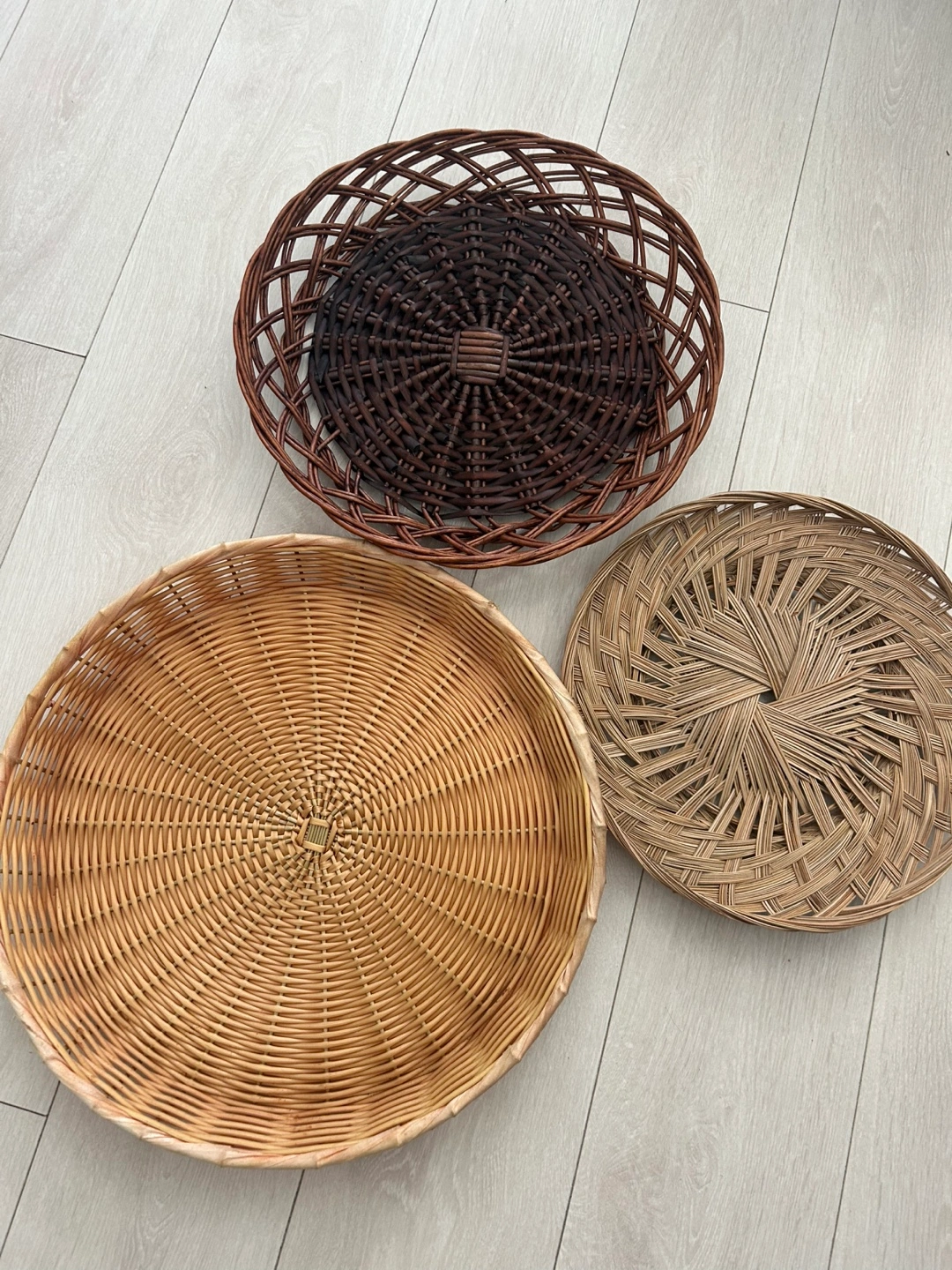 3 large baskets various sizes for decor or storage. These were used as wall decor. Selling as a set.