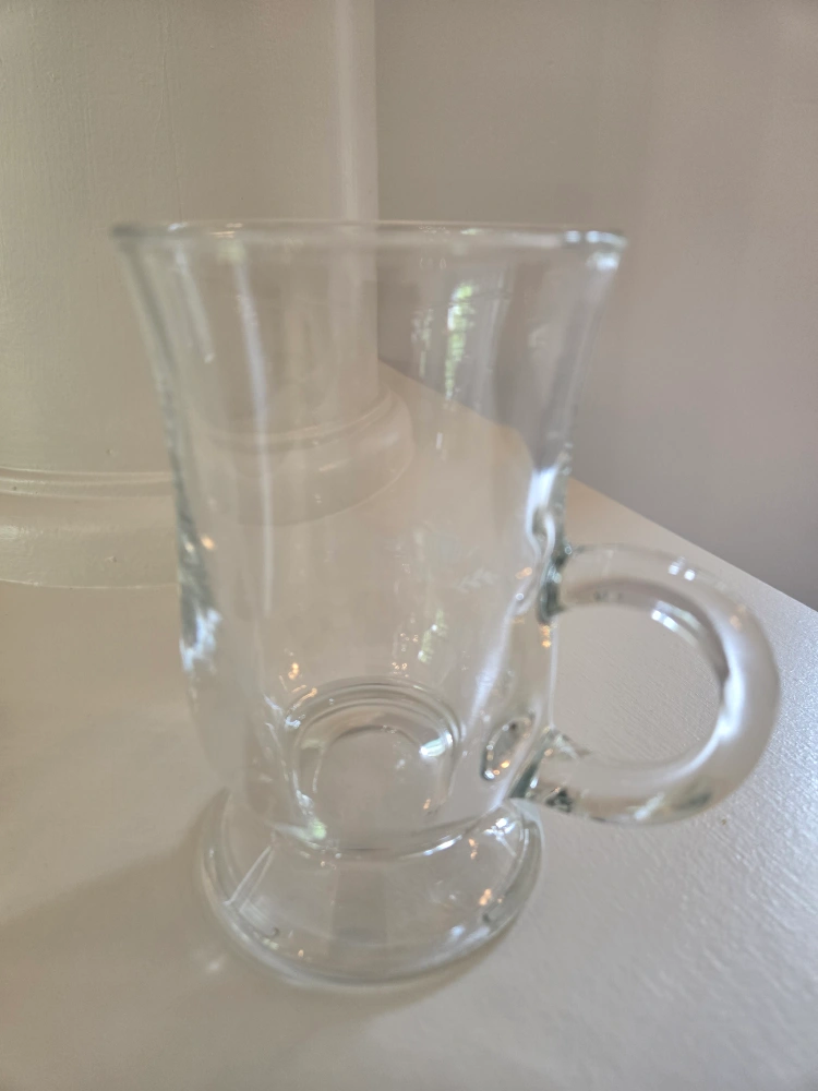 Clear glass Irish coffee mug in great condition! Perfect for enjoying your favourite hot beverages at home.