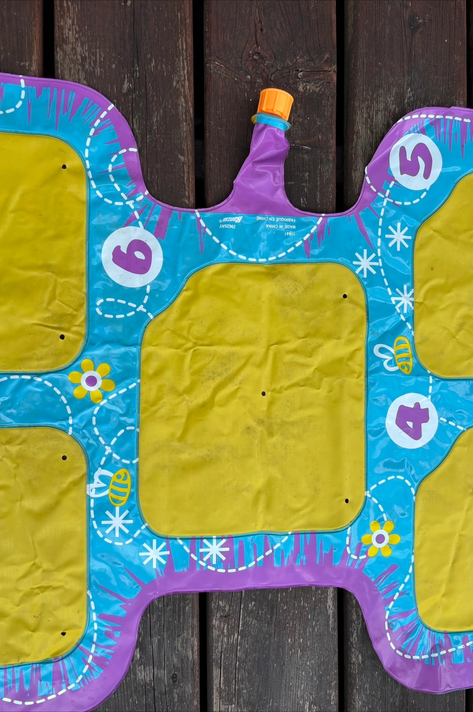 97Get ready for some fun in the sun with this SplashEZ! water pad. It's perfect for keeping the little ones cool and entertained during those hot summer days. This pad features a colourful design with numbers and cute little bees and flowers. Just hook it up to your hose, and you're ready to go!