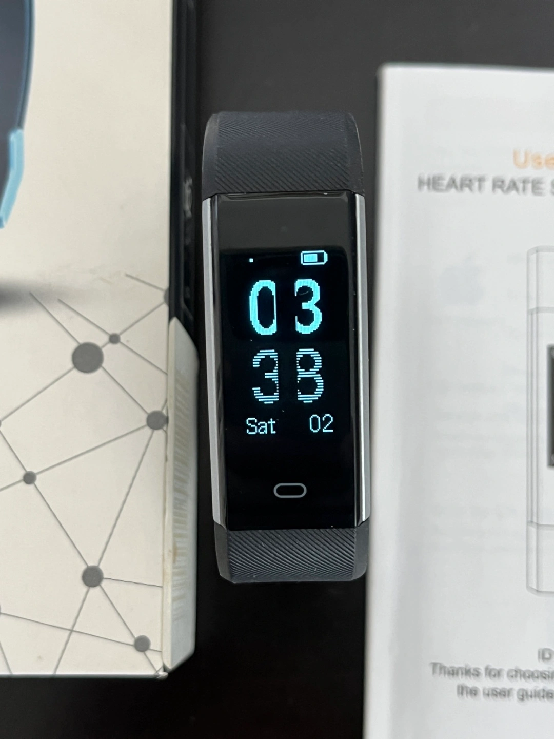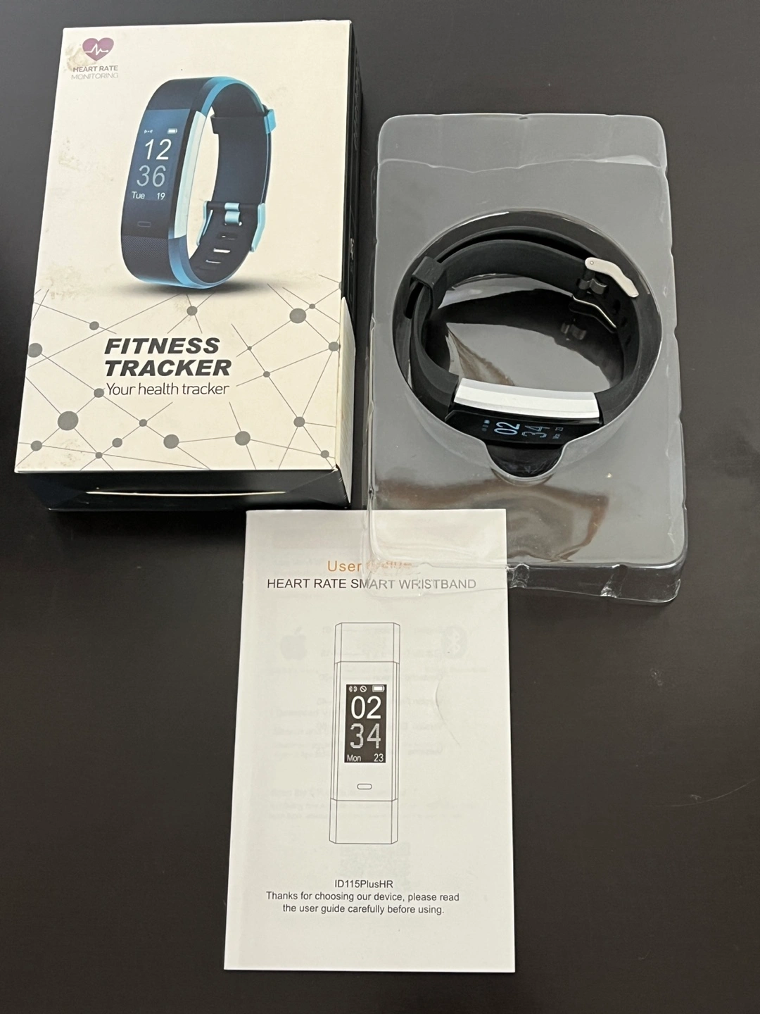 Brand new fitness tracker. It's a heart rate smart wristband and comes with the box and user guide.