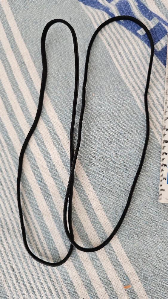 giving two black hair elastics, perfect for everyday use! Never used and ready for a new home! 40 cm if it was opened instead in a circule. It uses to come in a set of 10. I used when I swim.