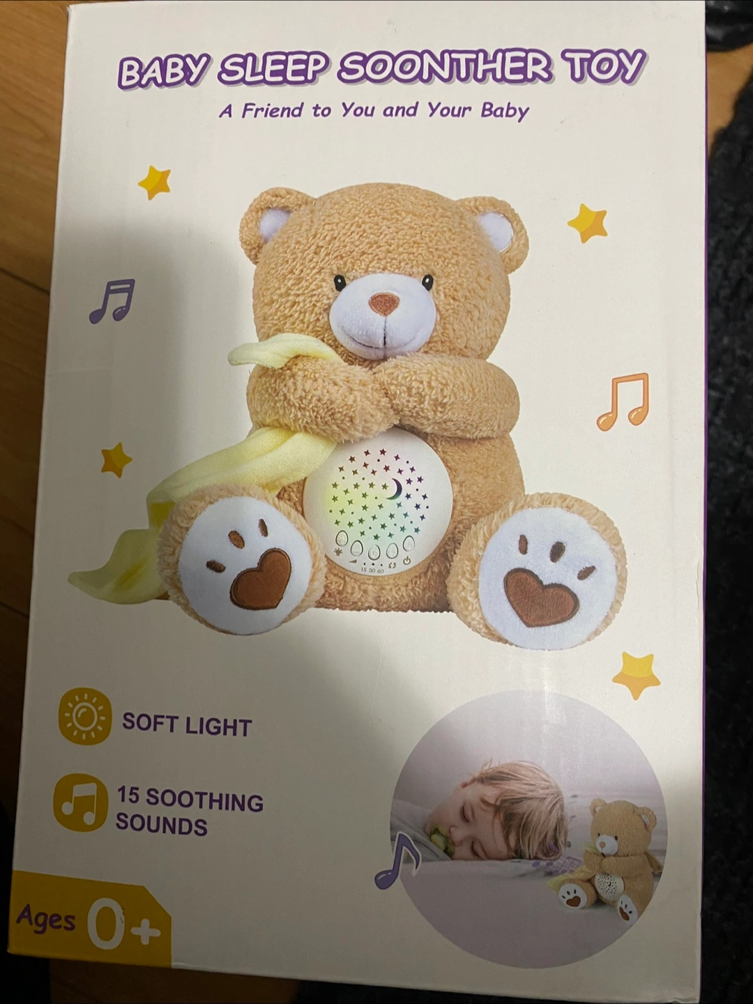 Selling a brand new baby sleep soother toy! It's still in its original box. This cute plush bear features a soft light and 15 soothing sounds to help your little one drift off to sleep peacefully. Perfect for ages 0+!