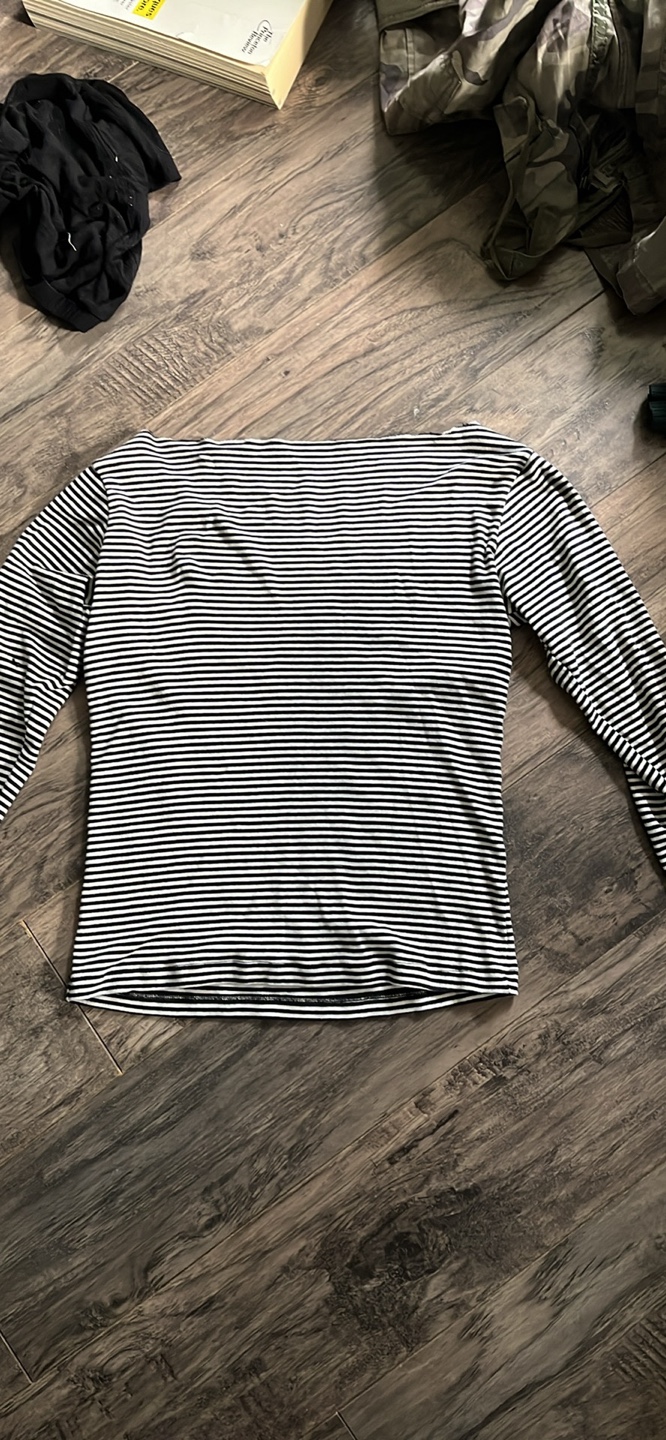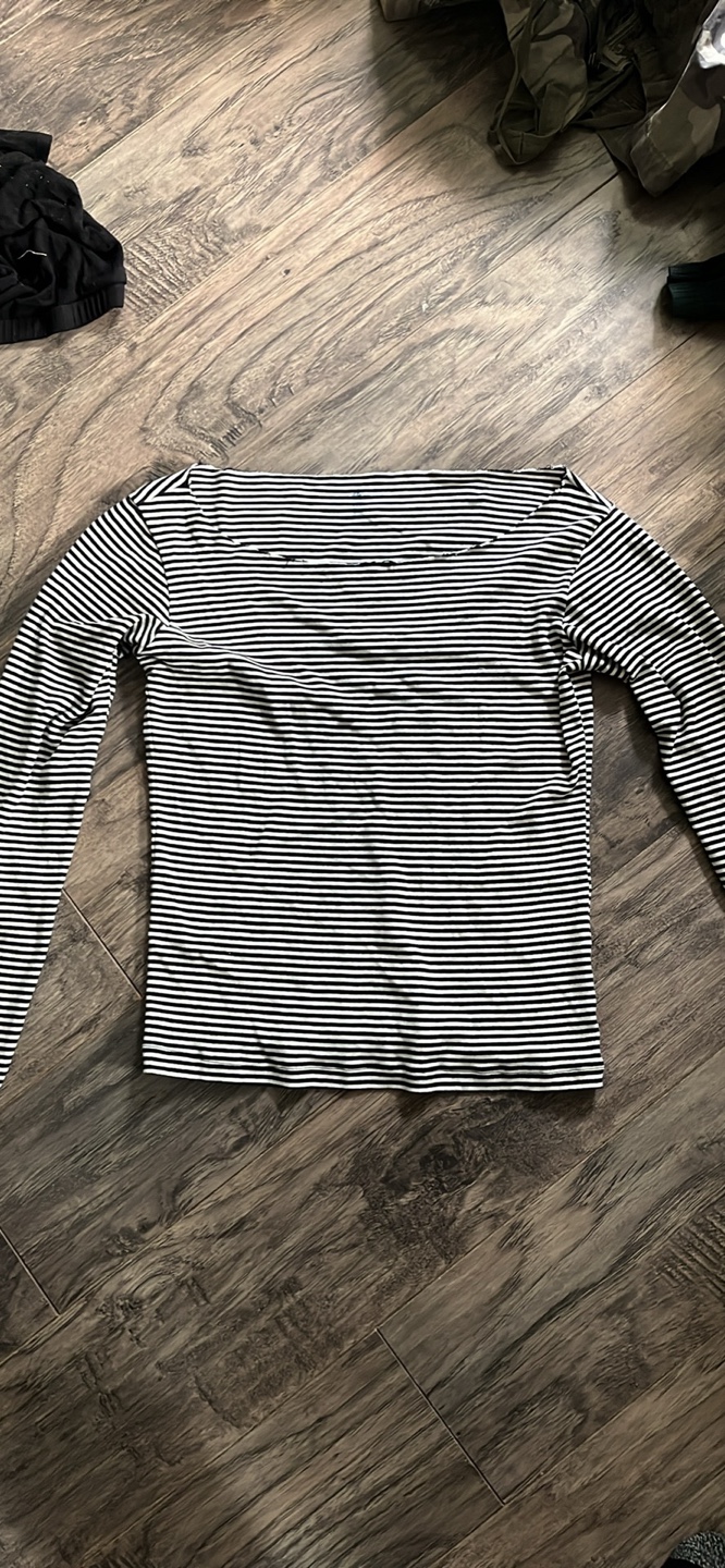 Brandy Melville long sleeve boat neck striped shirt. It’s in good condition, no staining or wearing out, and is perfect for causal wear. Comes from a smoke free and pet free home