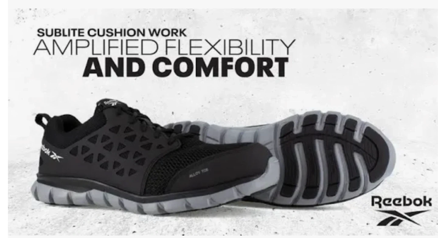 450Selling a barely used pair of Reebok Sublite Cushion Work shoes size 9 (men) in great condition! These shoes are designed for amplified flexibility and comfort, perfect for long days on your feet. They feature a stylish black design with a durable outsole for excellent traction. If you're looking for comfortable and reliable work shoes, these are a great choice!