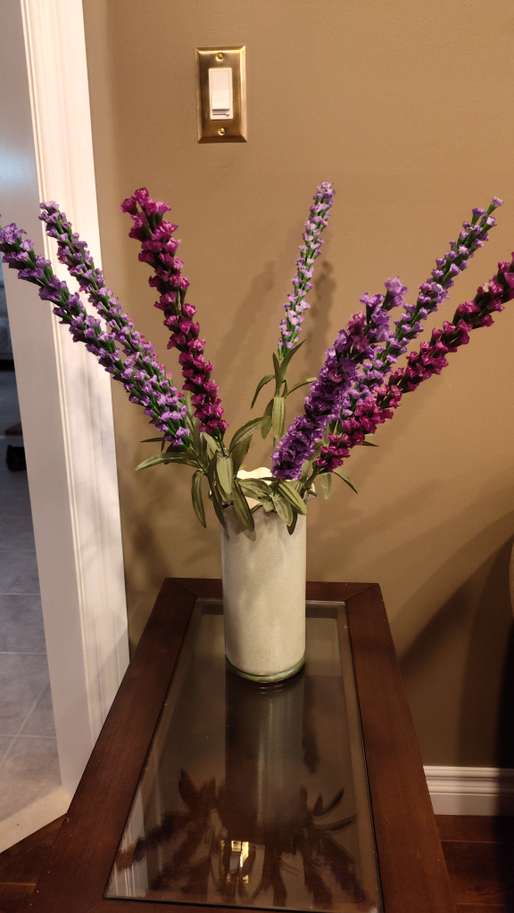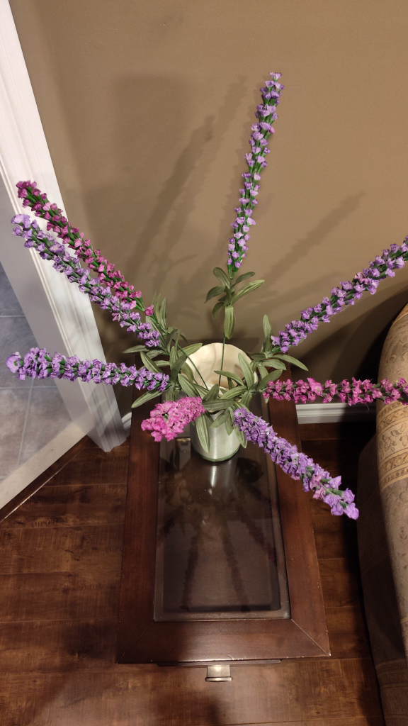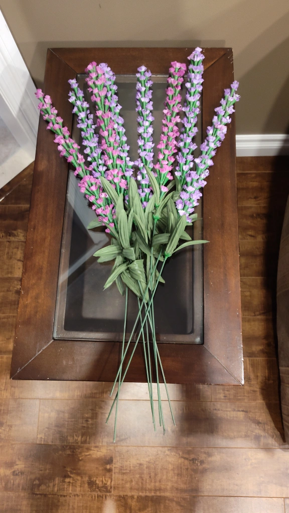 I'm selling a lovely artificial lavender floral arrangement. vase not included. It's perfect for adding a touch of colour to any room. The flowers are in great condition and ready to brighten up your space! Approximately 23 inches long.