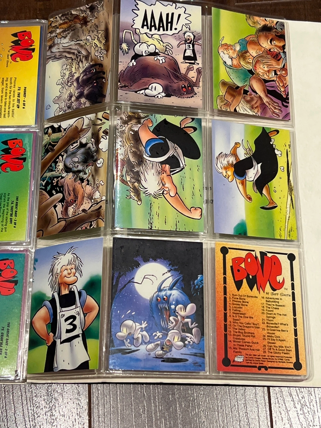 Selling a collection of Bone comic trading cards. These cards feature characters and scenes from the popular Bone comic series. Great for any fan or collector!