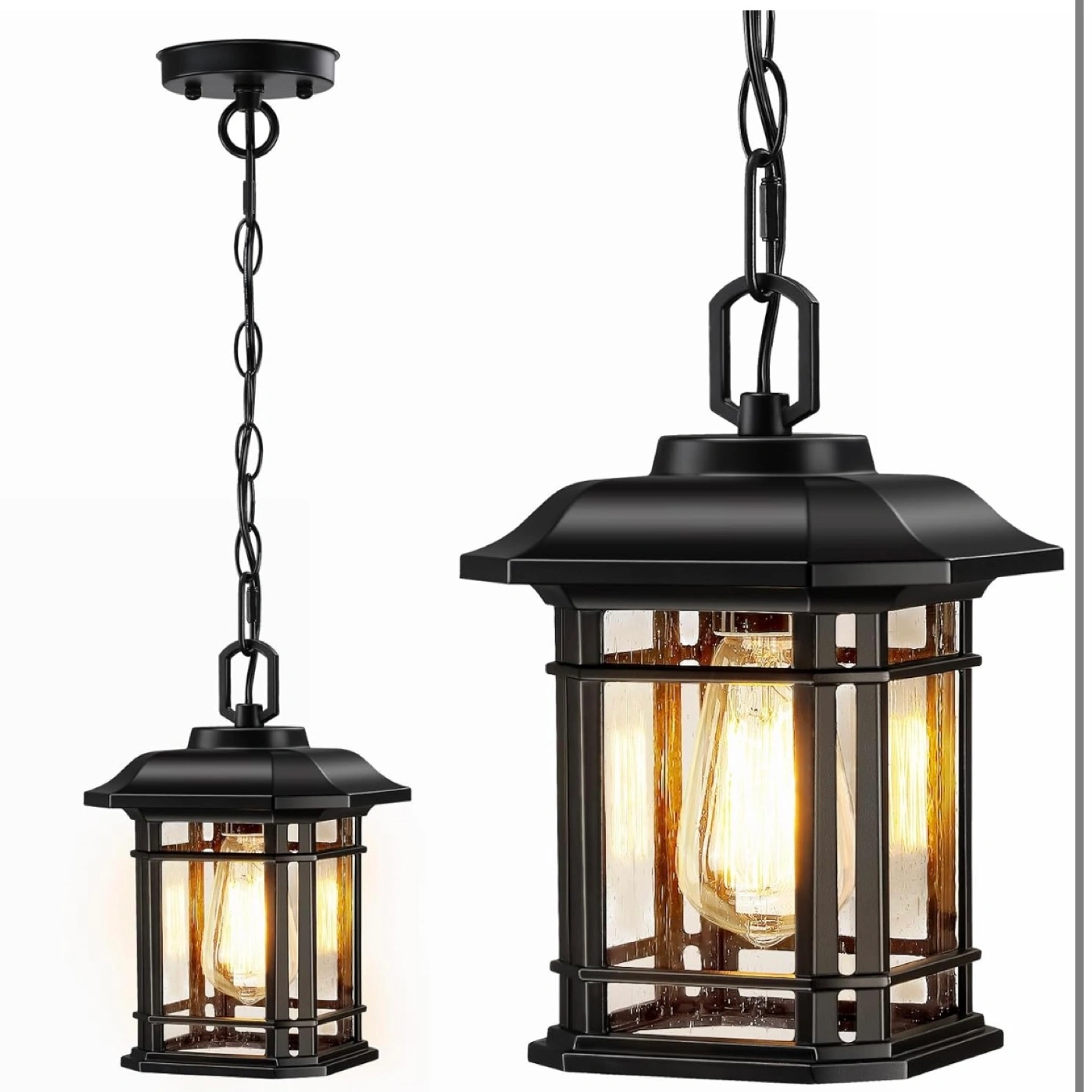This outdoor hanging pendant light is perfect for adding a touch of elegance to your patio or porch! It features: