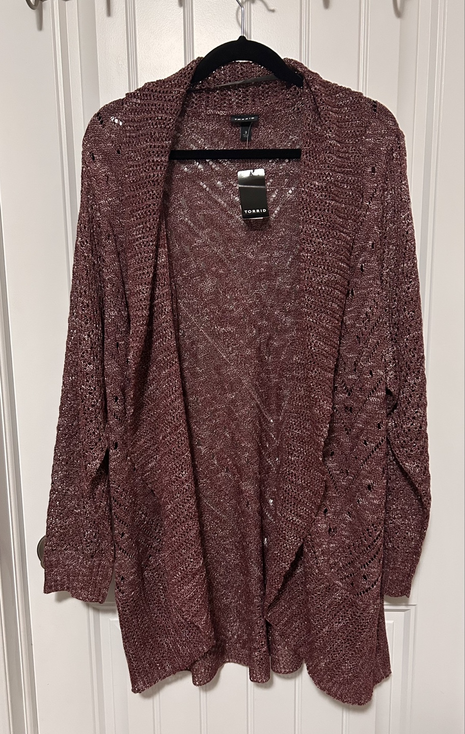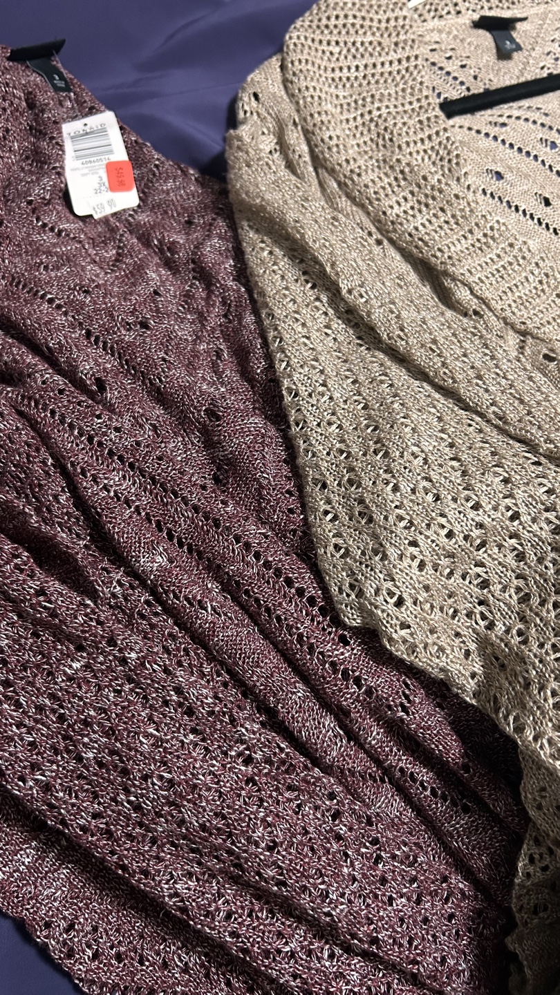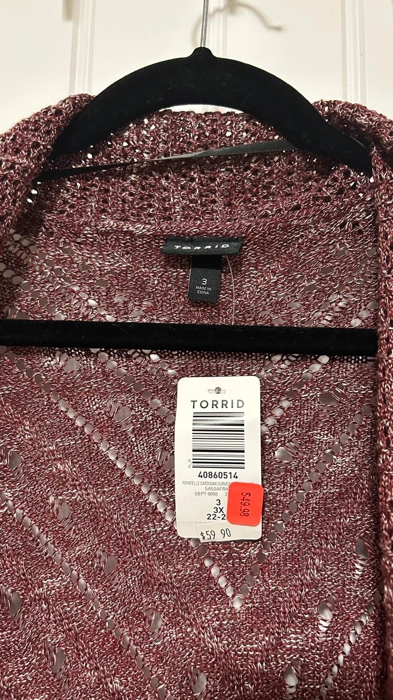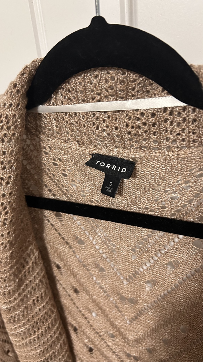 Brand new Torrid cardigans, still with the tags on! Size 3 and features a beautiful open knit design. Originally bought for $49.98 each, it's a stylish and comfortable piece to add to your wardrobe. Great for Fall! 🍂