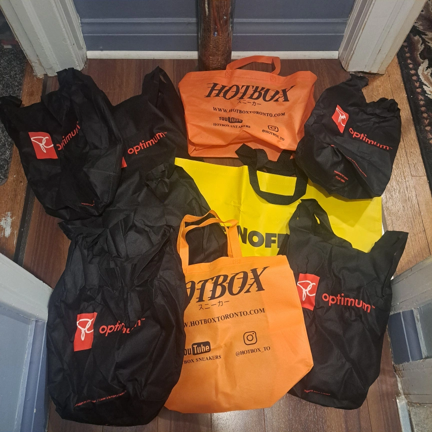 Includes 9 bags total. Most are pc optimum, others are No Frills and Hotbox. Various sizes. All in great condition.