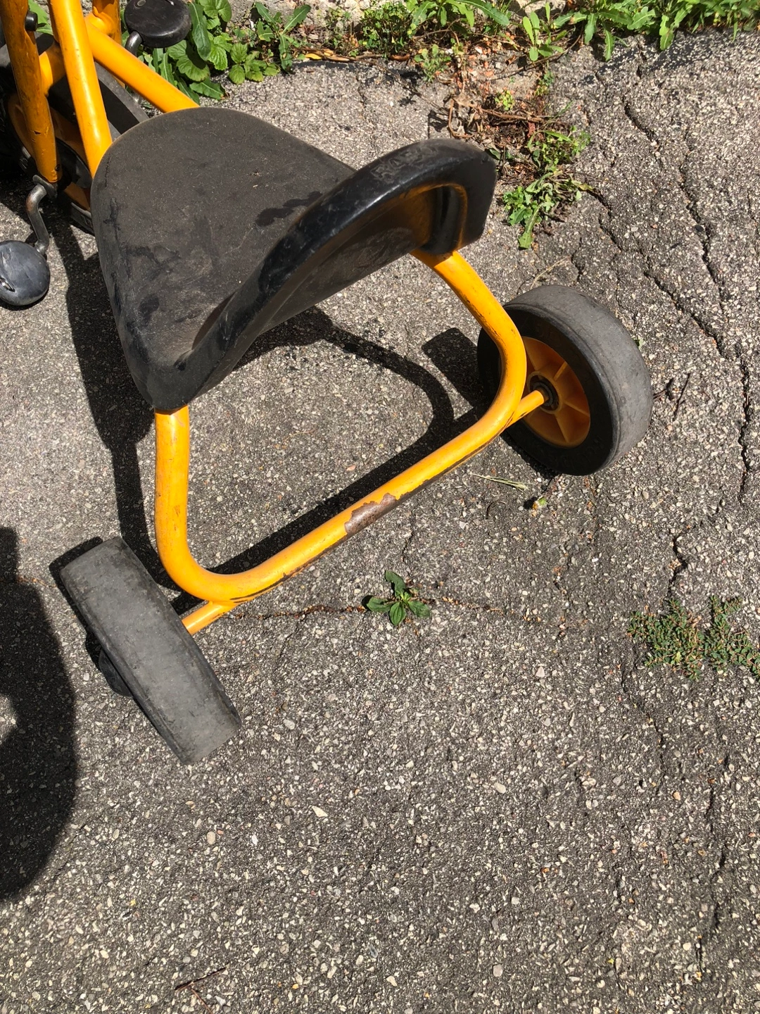 Selling a used ABC Design tricycle. It has a yellow frame and black seat. Perfect for little ones learning to ride!