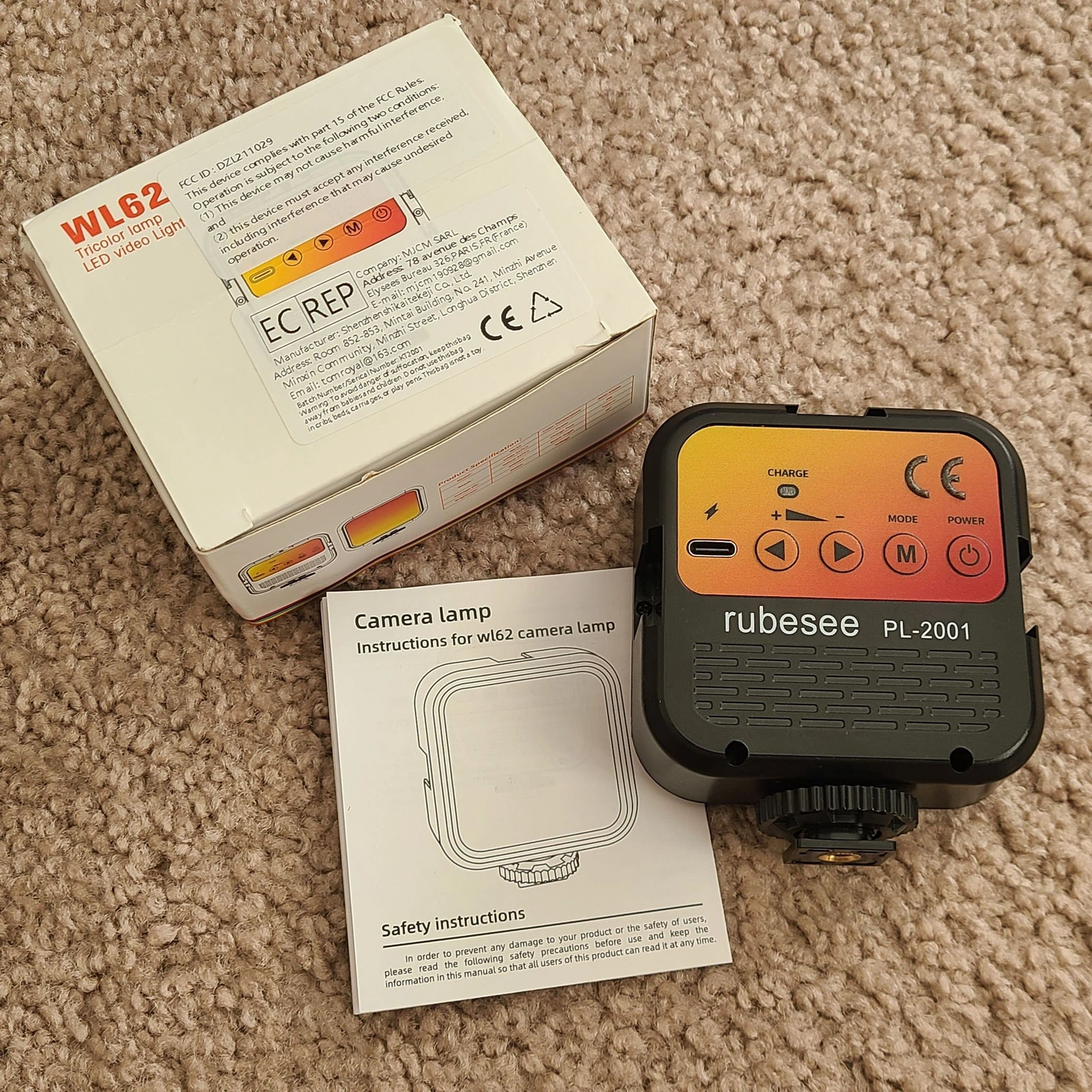 Portable camera lights for photography and video: Tri-colour mode (3000-5500K); Cold shoe on-camera video light; USB-C Rechargeable 1200mAh; Ultra-bright lighting for DSLR;