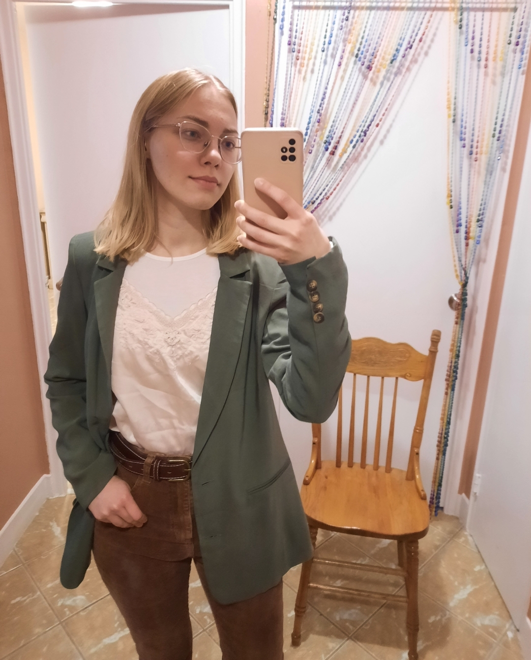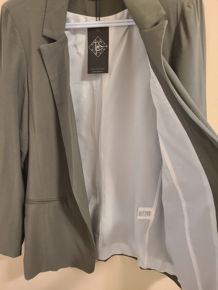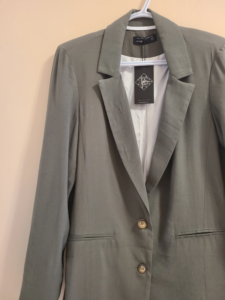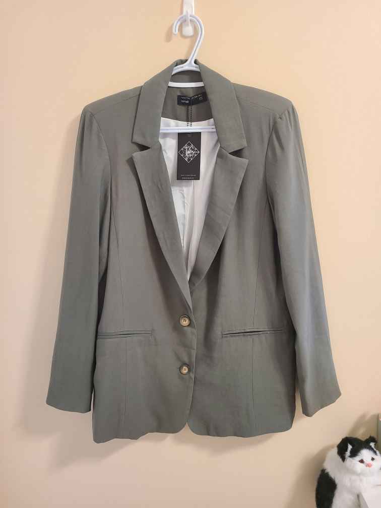 Selling this green oversized blazer. Slightly greener in real life. Size XS but fits like M. New with tags! Just don't love how it looks on me.