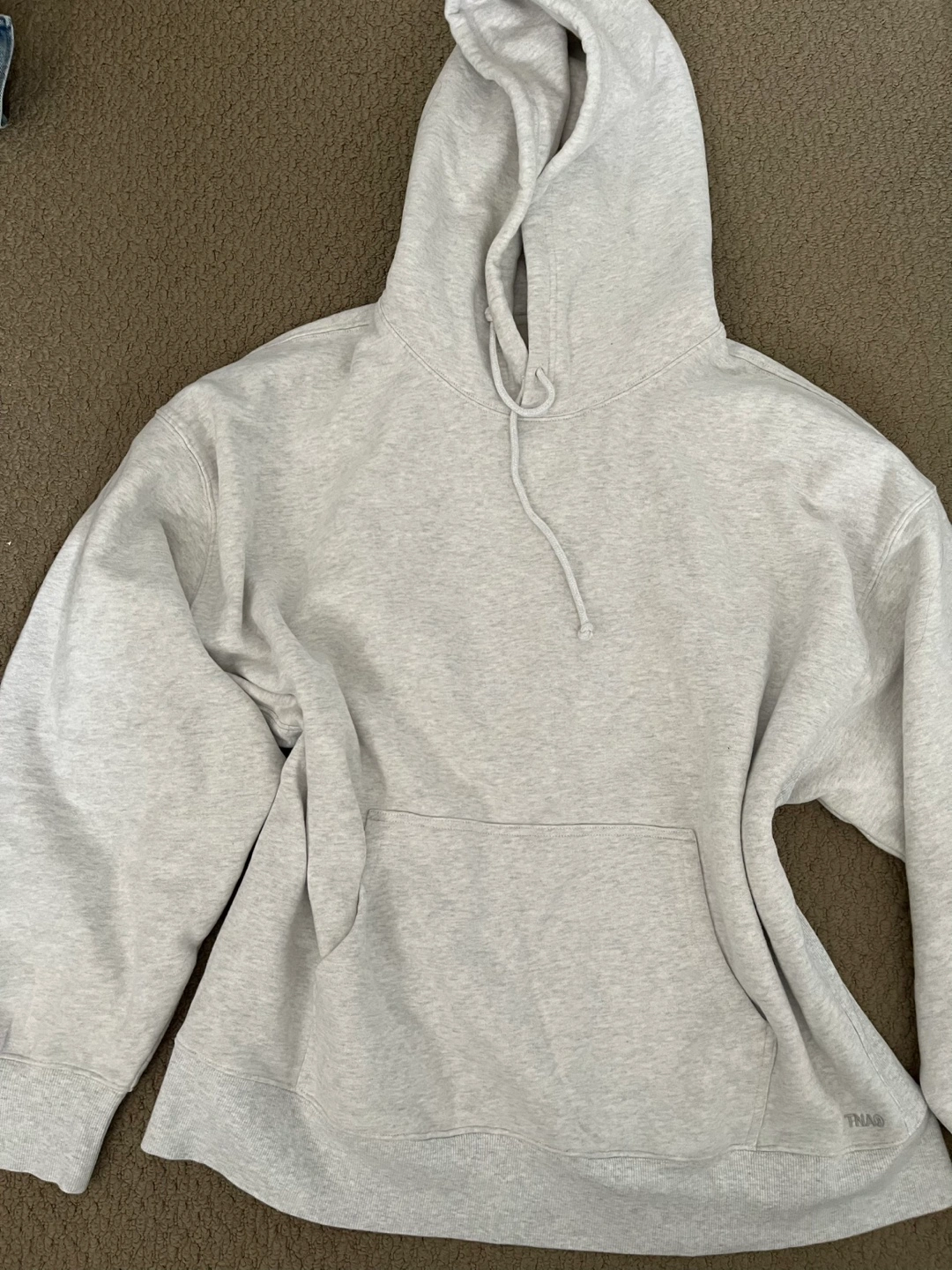 Selling a TNA Sweatfleece Cozy Fleece Boyfriend Fit hoodie in size 2XL. It's in great condition, although there is a small makeup stain as indicated in the description photo. Perfect for staying cozy and stylish. Comes from a smoke free and pet free home