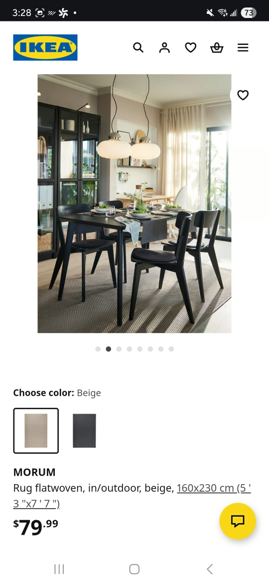 Selling a beige IKEA MORUM rug, perfect for indoor or outdoor use! It's a flatwoven rug, sized at 160x230 cm (5'3" x 7'7"). Originally bought for $79.99!