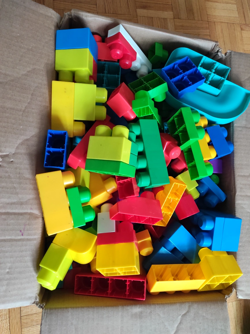 Selling a box full of colourful building blocks! Great for kids to get creative and build all sorts of things. Lots of different shapes and sizes included!
