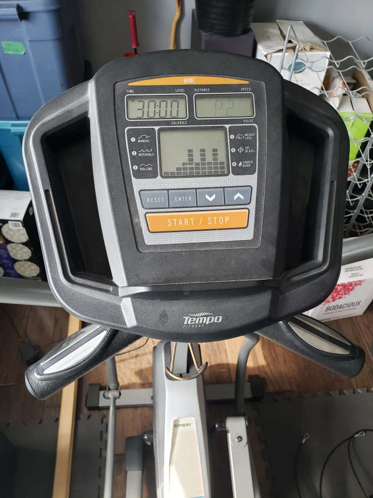 Selling a Tempo Fitness 610E Elliptical. It's in good working condition and ready for a new home gym! It has a display to show time, level, speed and pulse. Great for getting your cardio in! doesn't take up a lot of space either. can deliver for a fee