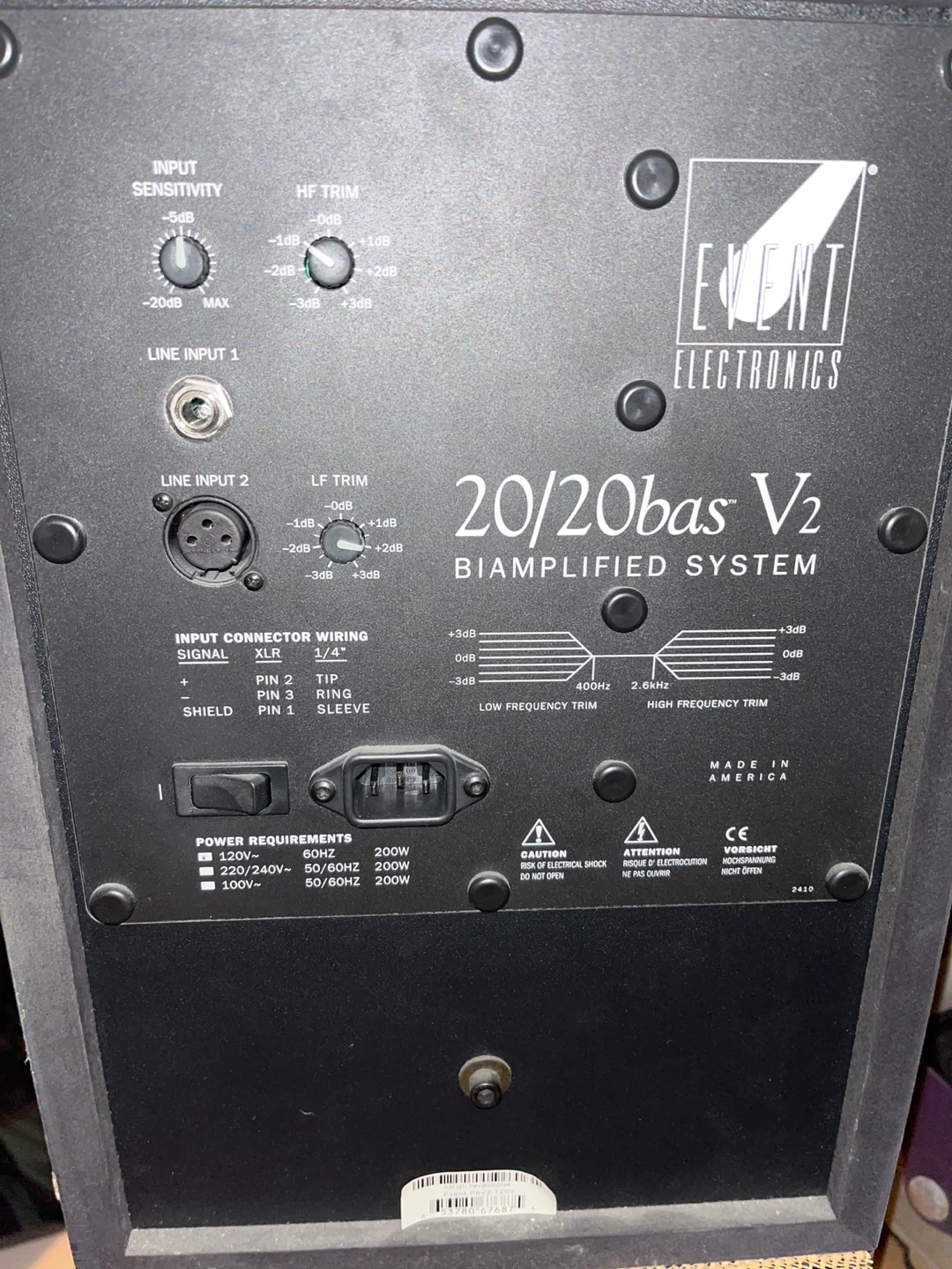 Selling a used Event Electronics 20/20bas V2 biamplified system. This speaker system is in good condition and ready to use! This is a steal of a deal.