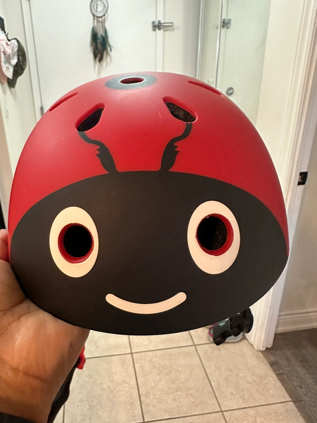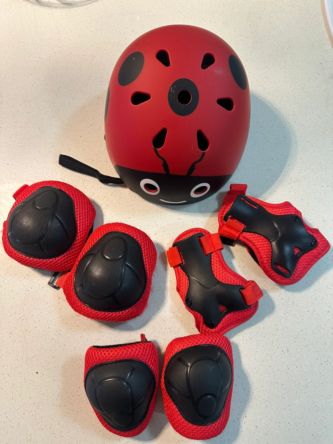 28Selling a super cute ladybug-themed helmet and pad set for kids! It includes a helmet and pads for knees, elbows, and wrists. Perfect for biking, skating, or scootering to keep your little one safe and stylish. In great condition and comes from pet & smoke free home.