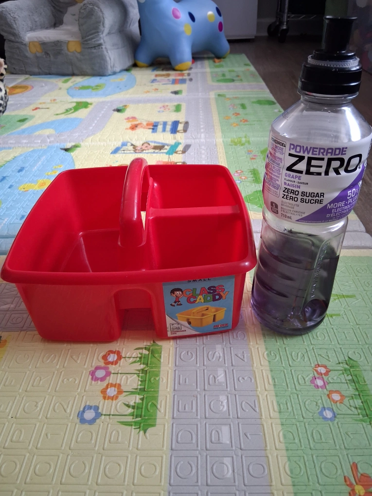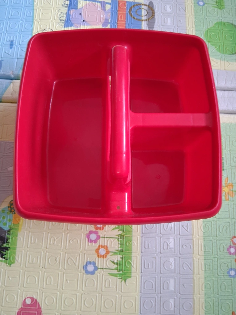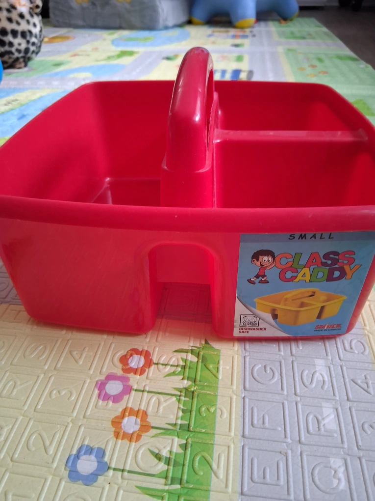 Selling a small red class caddy! It's great for organizing art supplies, cleaning products, or anything else you need to keep tidy. It has a convenient handle for easy carrying and is made of durable plastic.