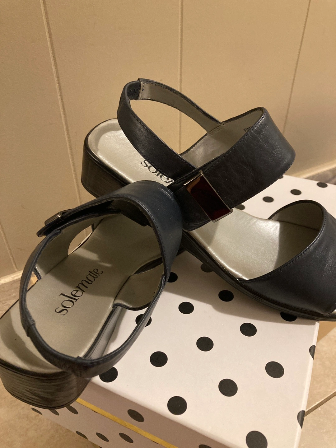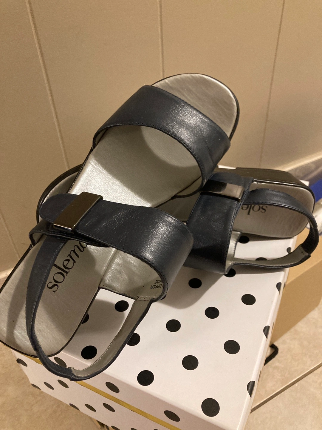 These Solemate sandals are in great condition and ready for a new home! They're a stylish black leather, perfect for dressing up or down. Size 8.