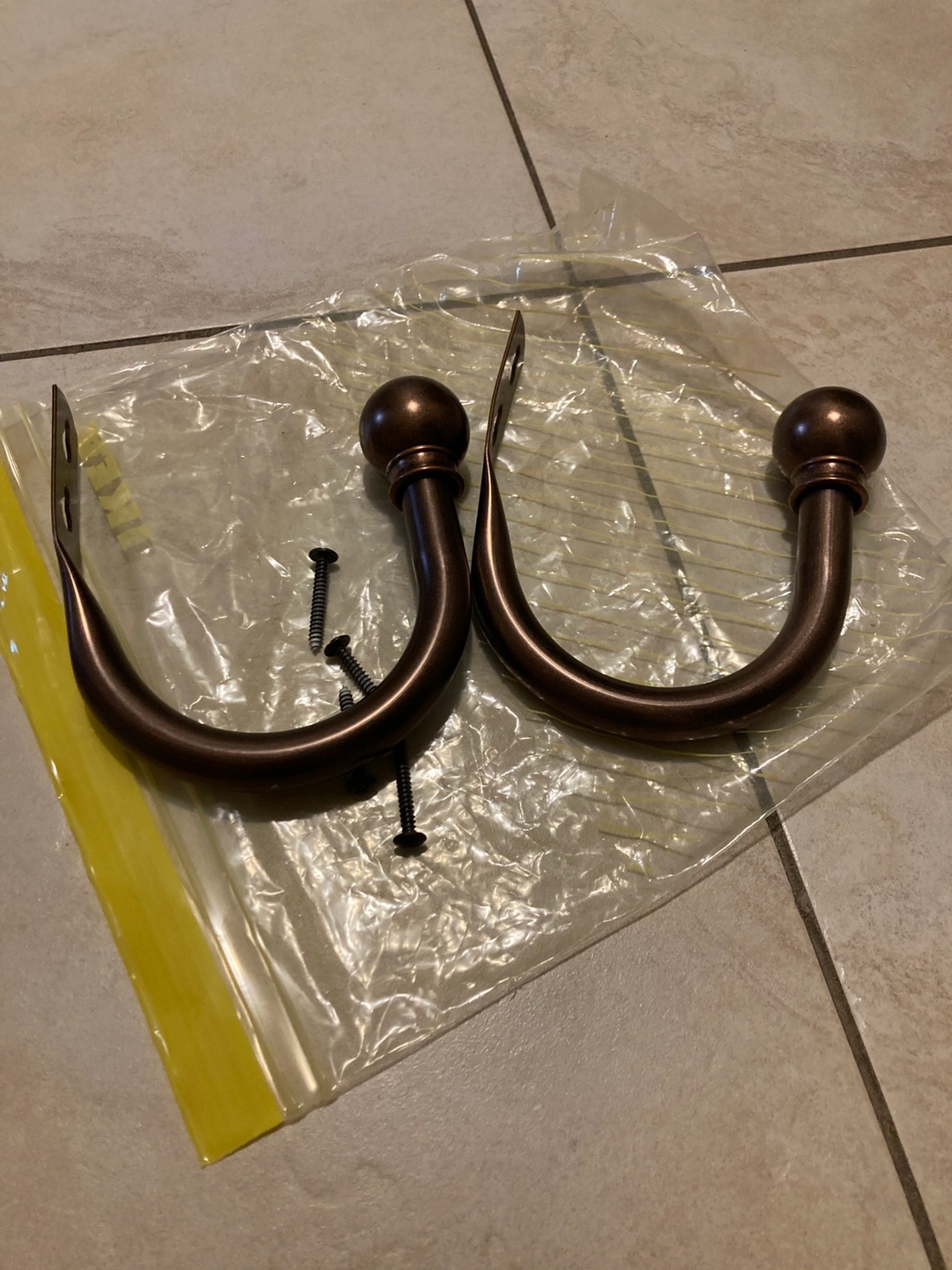 Selling a pair of curtain tiebacks with a bronze finish. They're still in their original packaging and come with the necessary screws for installation. Perfect for adding a touch of elegance to your curtains!