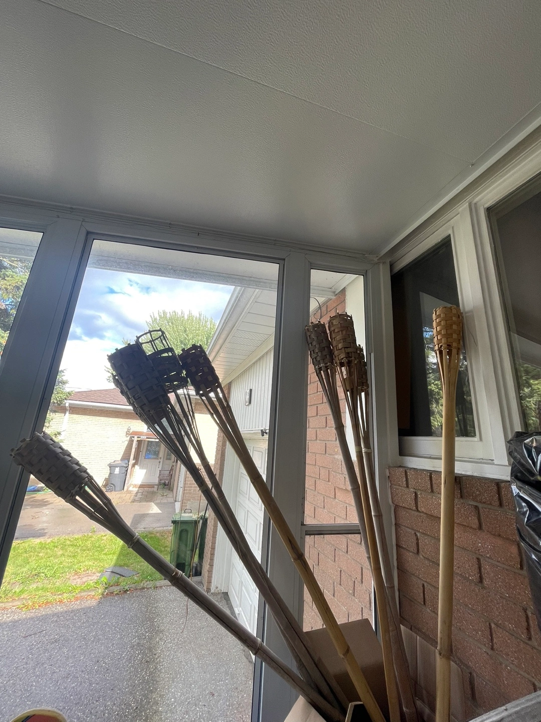 Selling a set of 9 bamboo tiki torches. They're great for adding some ambiance to your backyard or patio. Perfect for summer evenings!