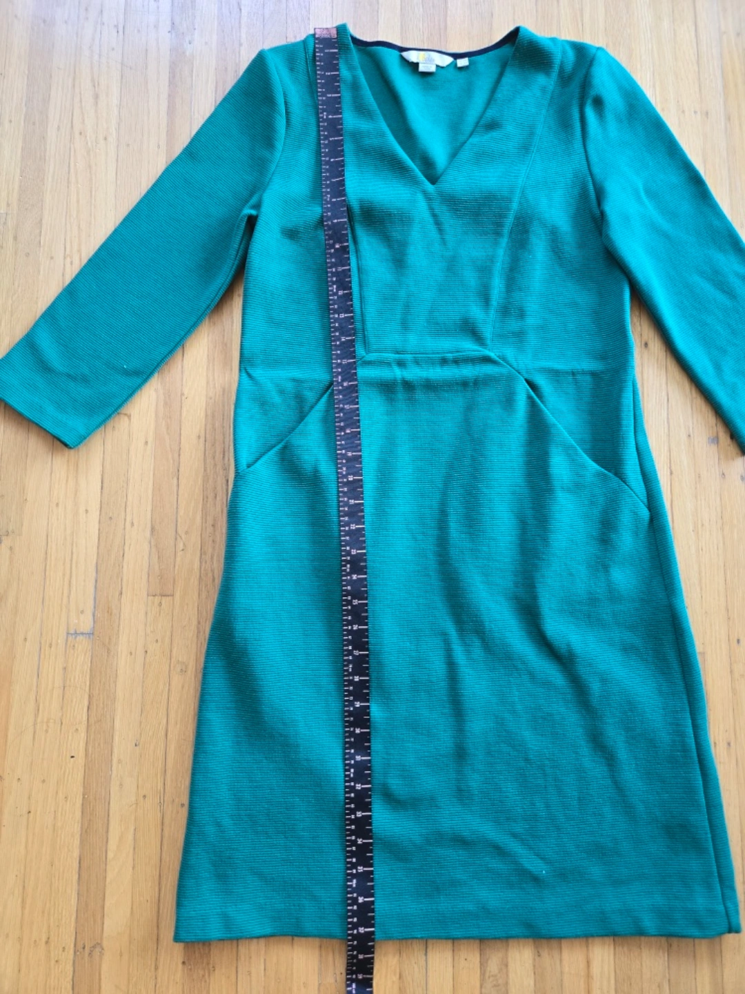Boden Sheath Dress Green Knee Length 3/4 Sleeve Pockets Pullover