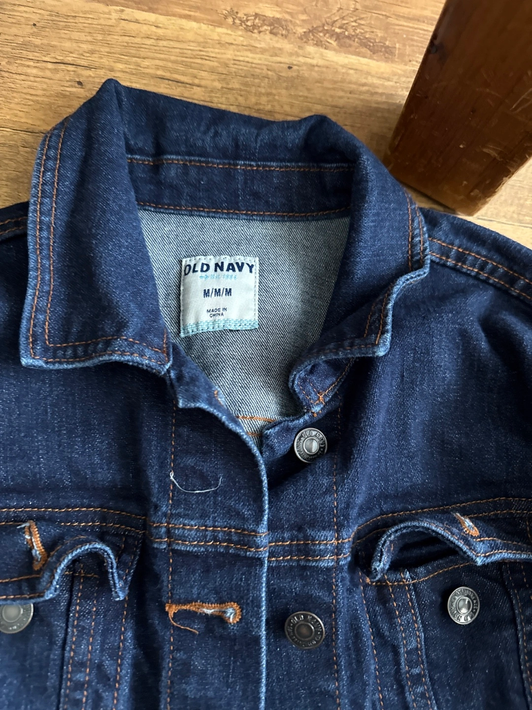 Classic Old Navy denim jacket in a versatile dark wash! It's a size M, perfect for layering. Great for adding a bit of style to any outfit, and in good condition