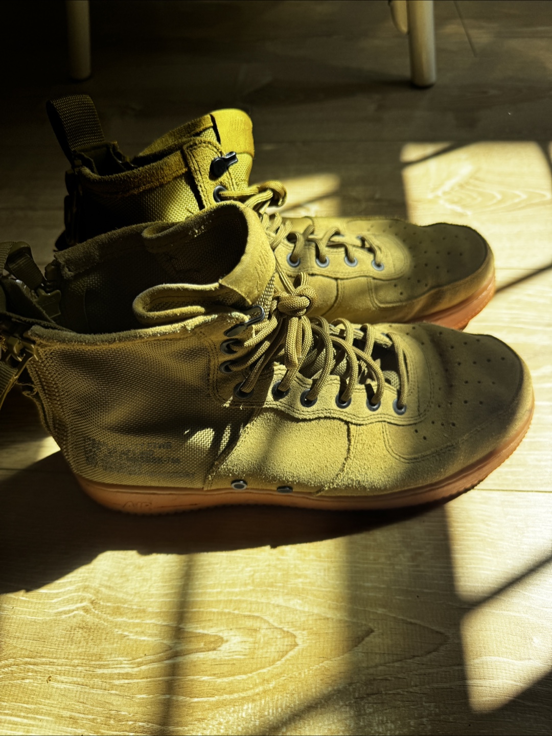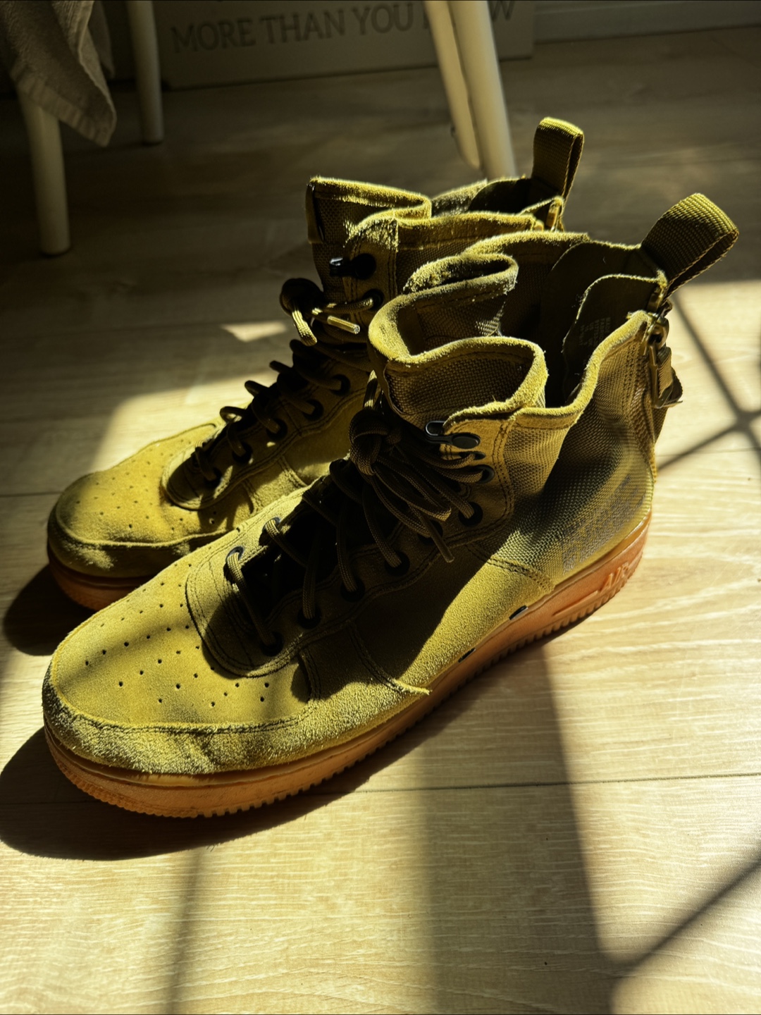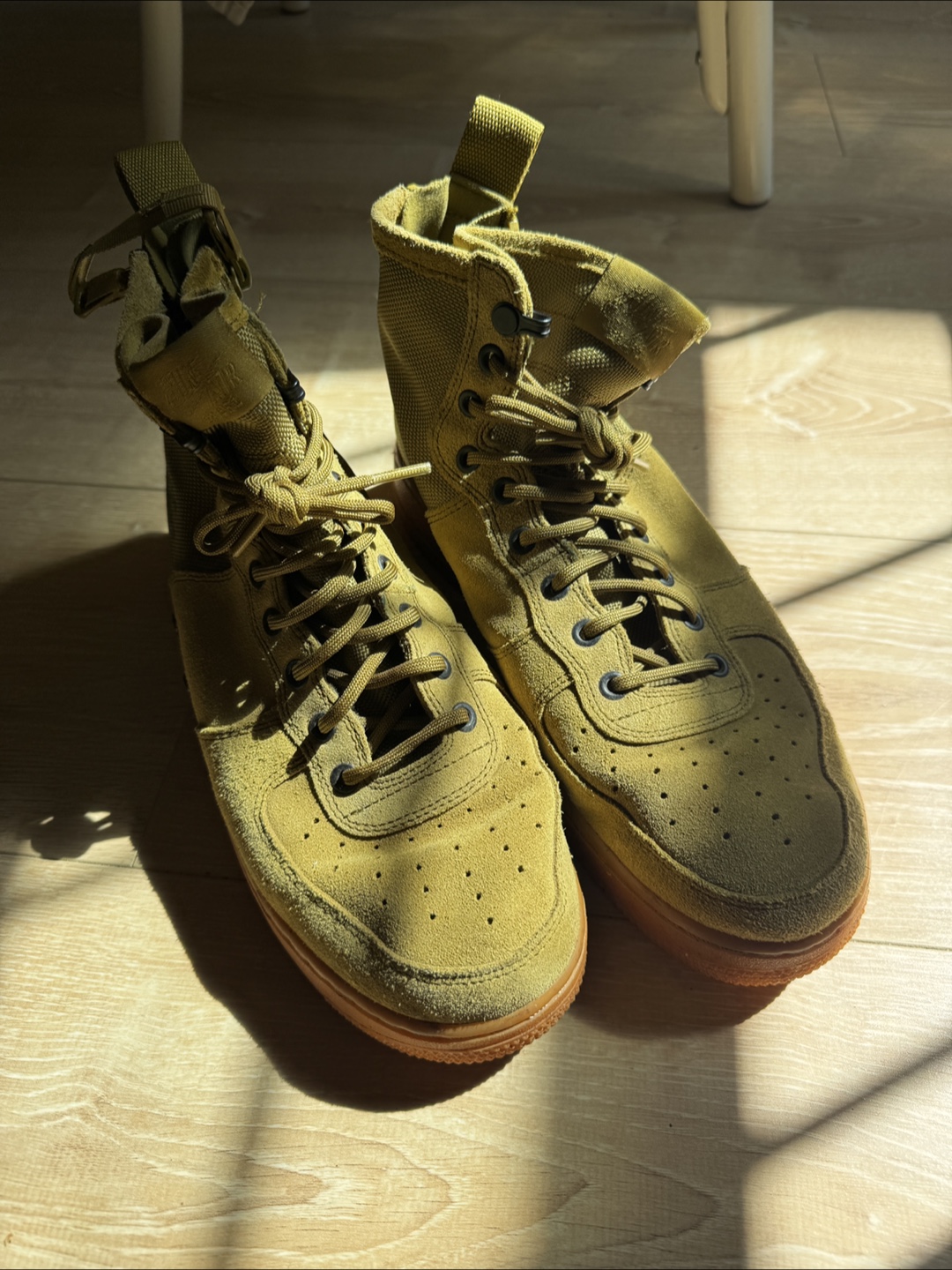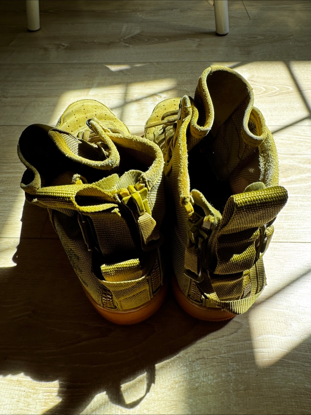 Selling a pair of Nike Air Force 1 High Utility 2.0 sneakers in size US 10. These are in good condition and ready for a new home! They have a unique design and are very comfortable. Only worn a couple of times. Pickup at Barclay Heritage Square in the West End. Cash only.