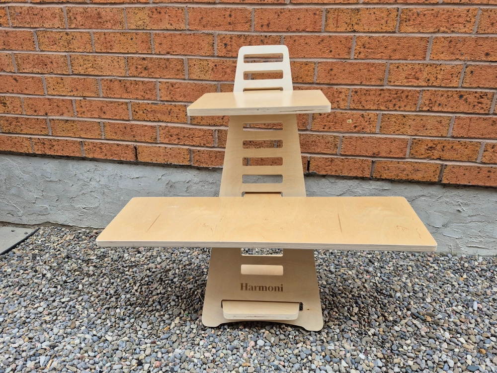 Selling a Harmoni standing desk converter. It's in great shape and perfect for turning any regular desk into a standing workstation. It's made of wood and is adjustable to different heights. Perfect for working from home! Great deal a d well below value.
