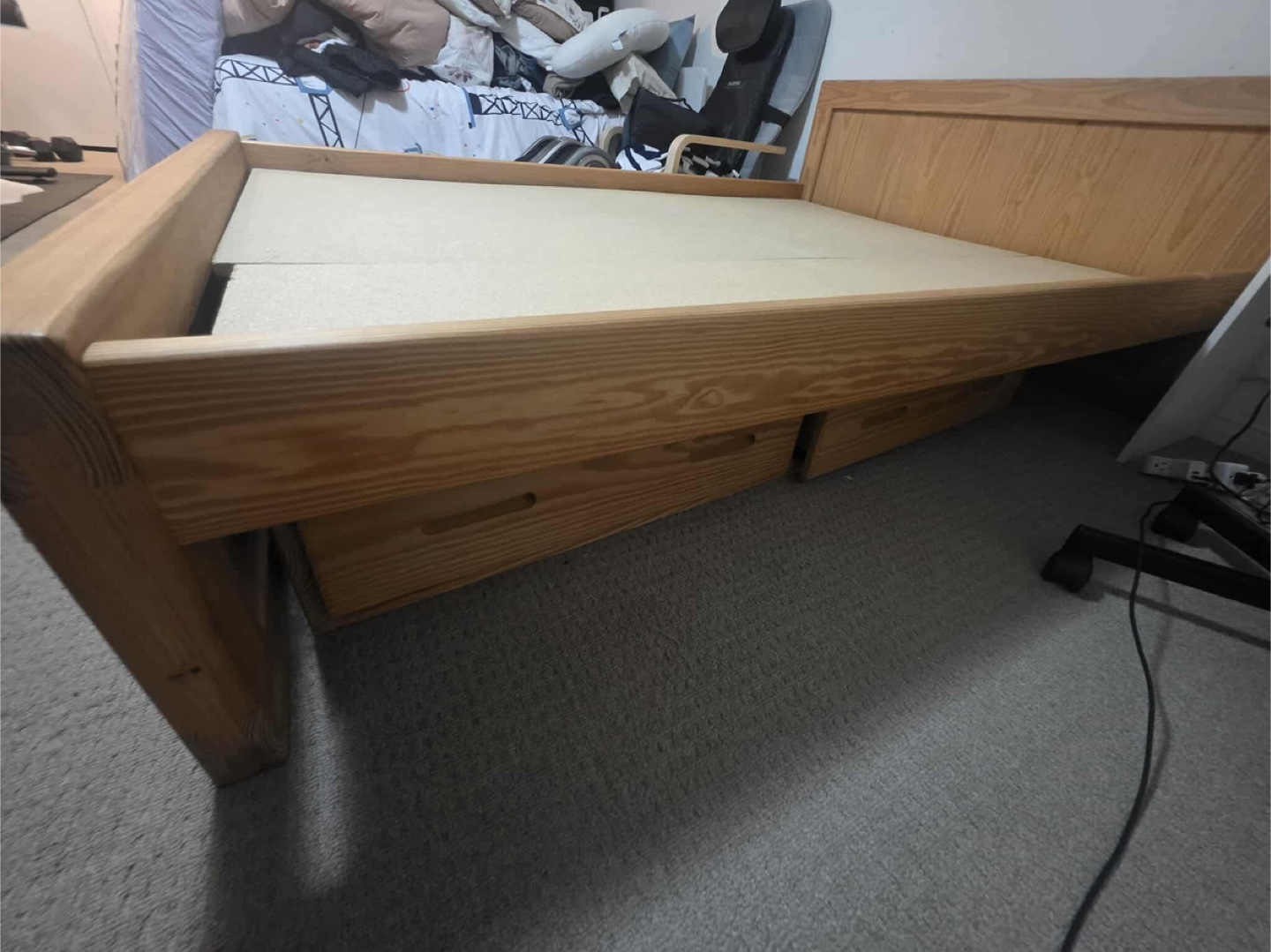 Selling this wooden double bed frame. This is a used bed frame but has very little damage like scratches and dents.