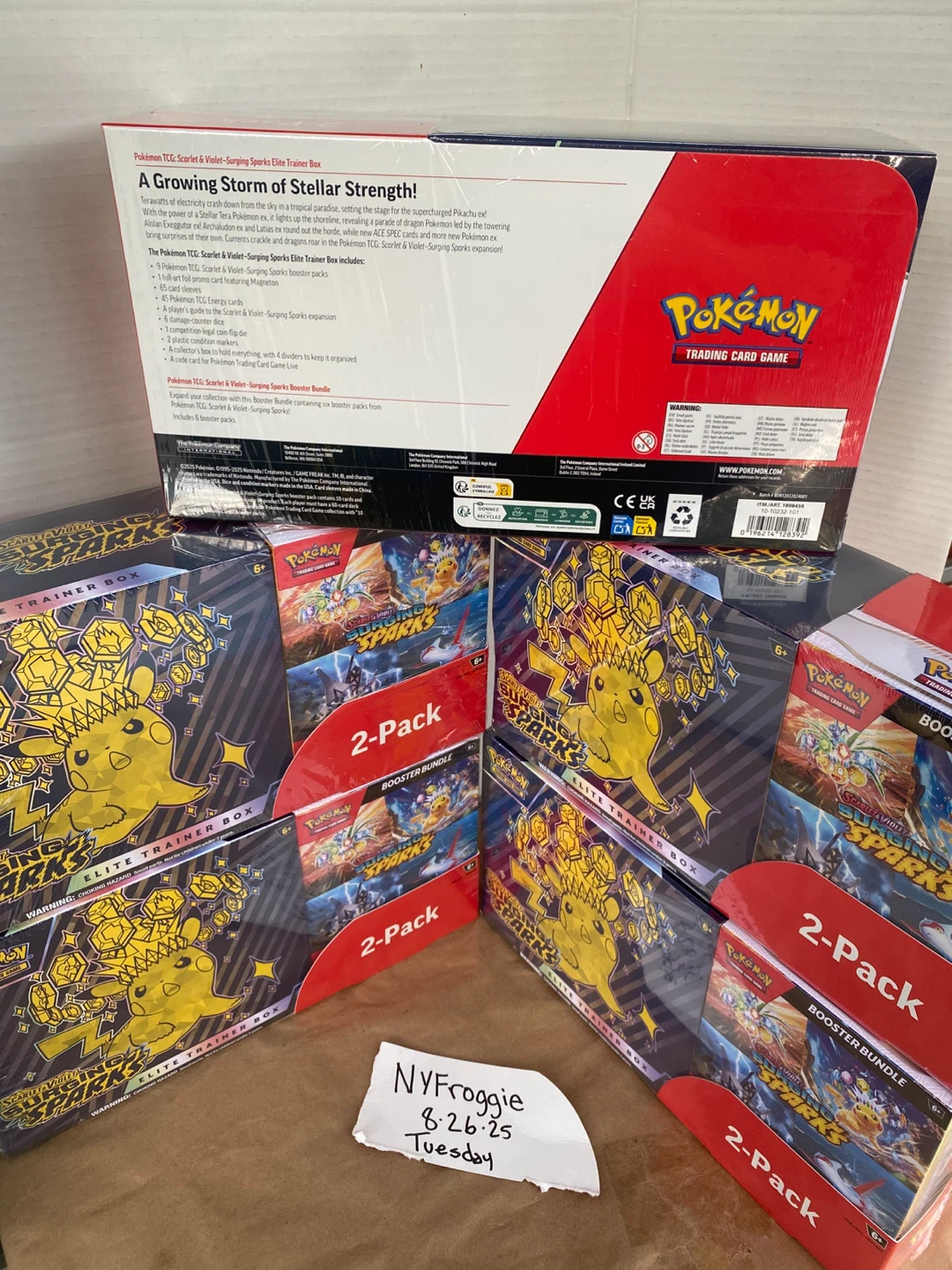 1 / 21 / 2Buy & SellPokemon TCG S&V Surging Sparks Elite Trainer Box comboPokemon TCG S&V Surging Sparks Elite Trainer Box combo$120I'm selling sealed Pokemon TCG Scarlet & Violet Surging Sparks Elite Trainer Boxes and Booster Bundles. $120ConditionNewWHERE TO MEETMovie TheaterView MapSELLERverifiednyfroggieEdenwald1205 reviews1 chats·0 favorites·22 viewsSEND CHAT TO SELLERHi nyfroggie! I’m interested in your listing.Hi nyfroggie! I’m interested in your listing.Get the Karrot app to chatSign In to chat