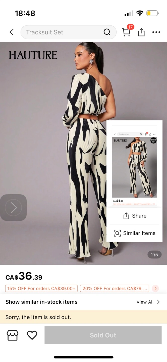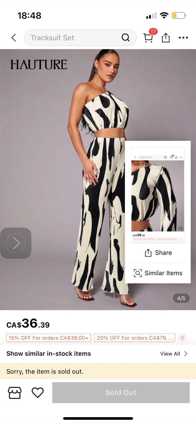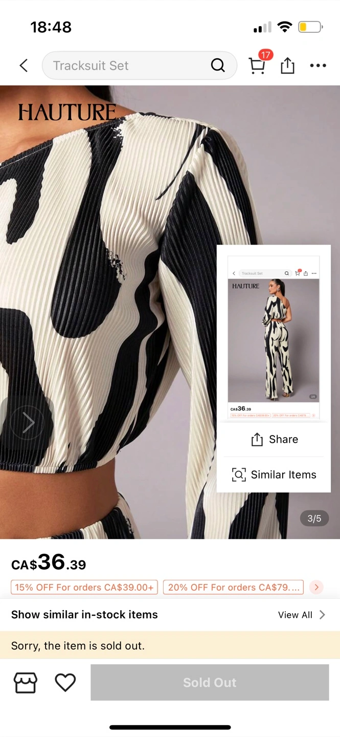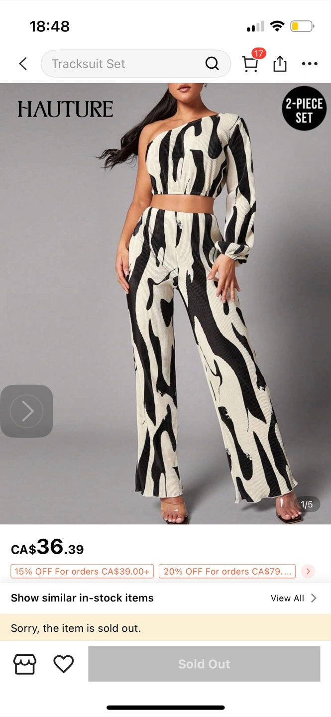 XS US2 runs a bit large for me Selling a Hauture two-piece tracksuit set! This set features a unique black and white pattern. It's a stylish and comfortable outfit, perfect for casual wear or dressing up for a night out. Originally listed for CA$36.39