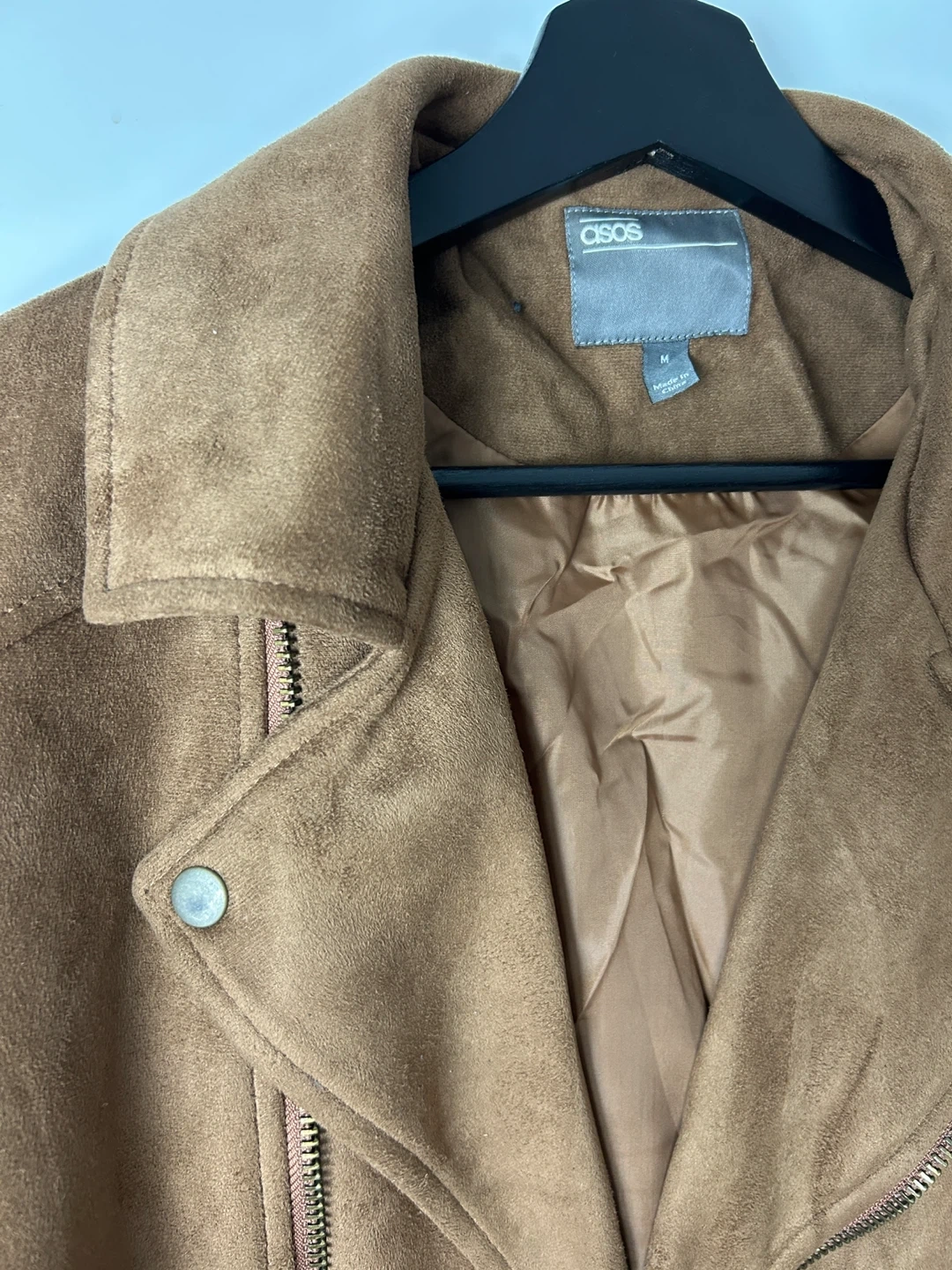Selling a stylish ASOS jacket in a brown vegan suede. It's a size medium and in great condition, ready to add a cool edge to your wardrobe