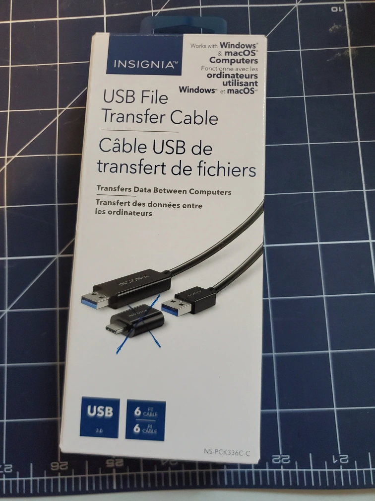 Selling an Insignia USB File Transfer Cable! It's 6ft long and perfect for transferring data between computers. Works with both Windows and macOS. Adapter not included.