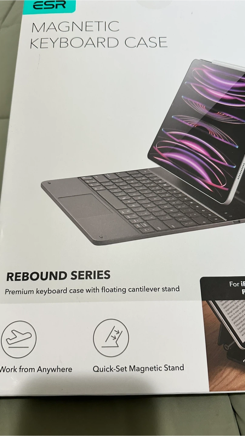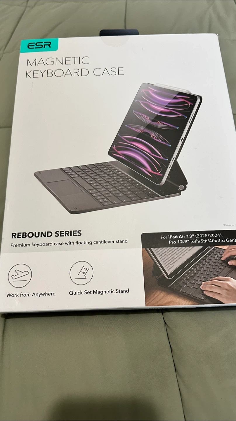 84Looking to sell an ESR Rebound Series magnetic keyboard case for the iPad Air 13" (2025/2024) or Pro 12.9" (6th/5th/4th/3rd Gen)! It's a premium keyboard case with a floating cantilever stand. Perfect for working from anywhere with its quick-set magnetic stand.