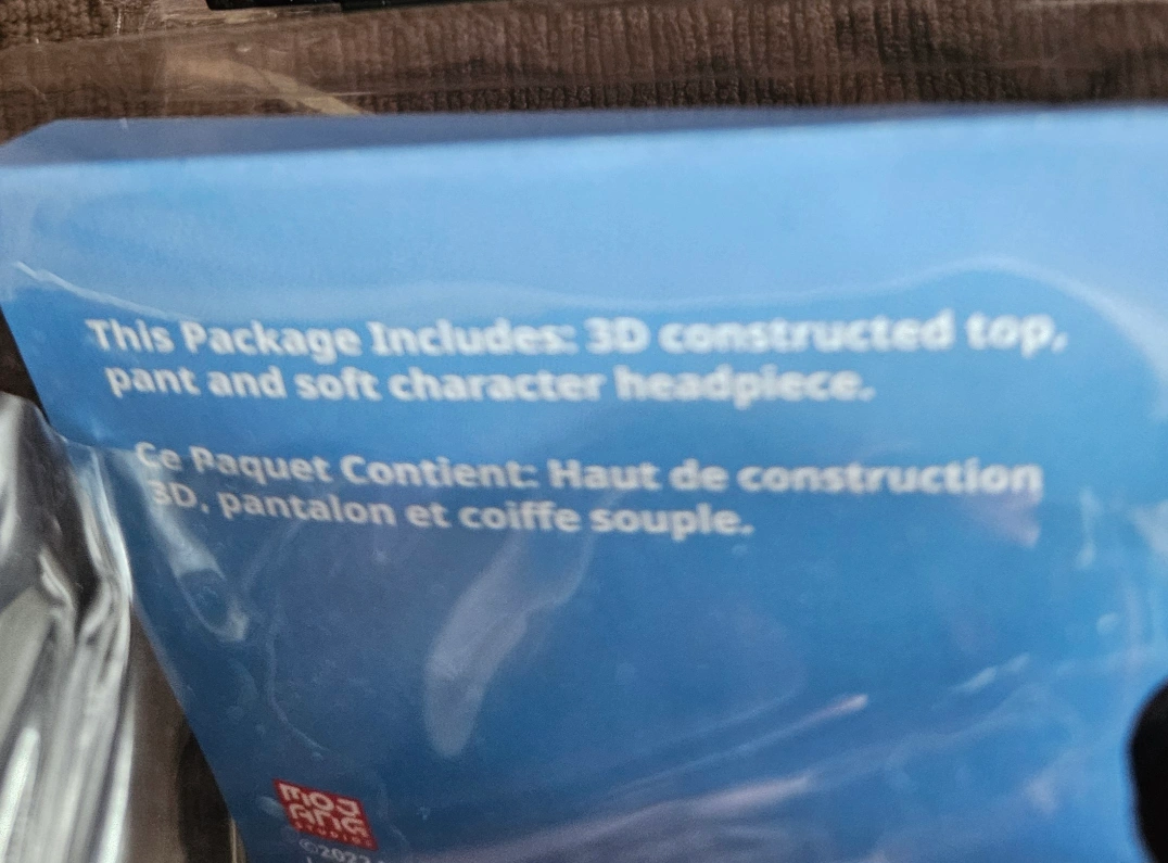 65New, never used, Minecraft Netherite Armor costume, size large (10-12). The package includes a 3D constructed top, pants, and a soft character headpiece. Additional sizing information is in attached pictures.