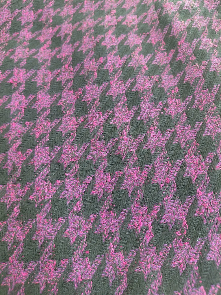 Classic houndstooth pattern in black and purple/pink.