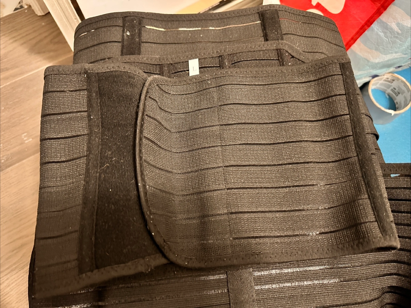 Selling a postpartum belly band in black, size L. It's in great condition and ready to provide support where you need it most