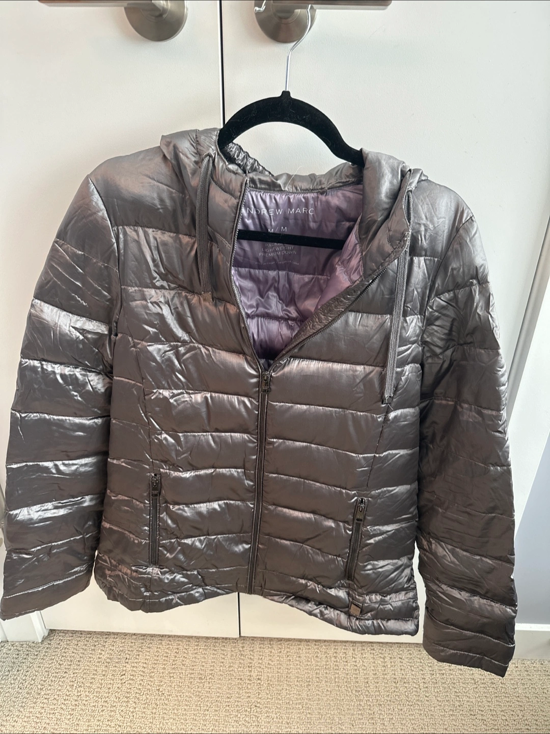 Andrew Marc packable down jacket in size medium. It's lightweight and in great condition. Perfect for layering or wearing on its own during milder weather.