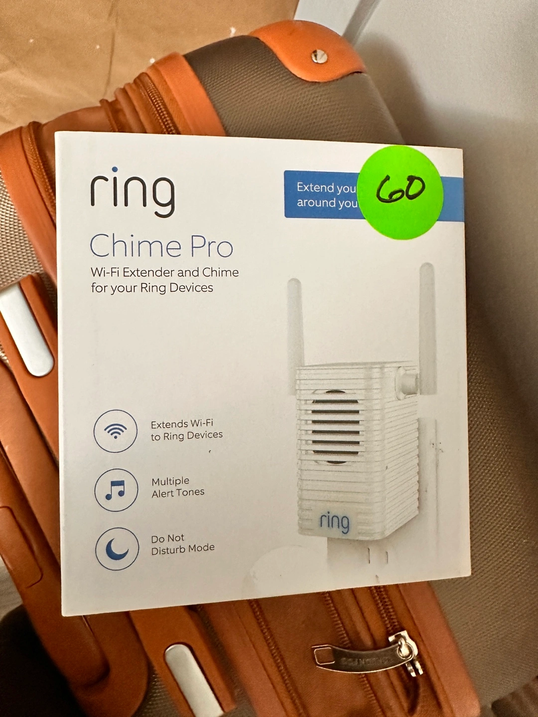 Selling a Ring Chime Pro, a Wi-Fi extender and chime for your Ring devices! It extends Wi-Fi to boost your Ring devices' connectivity. It also features multiple alert tones and a do-not-disturb mode. Setup is easy, just plug it in!