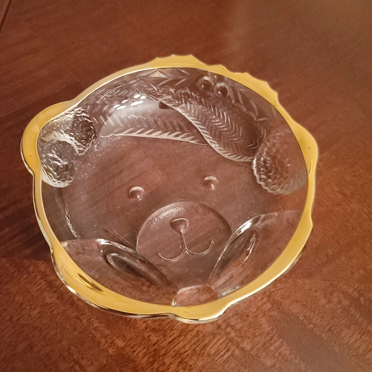 Cute Bear-Shaped Glass Bowl with Gold Rim