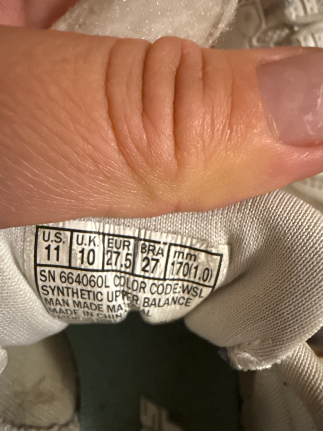 Selling a pair of Skechers kids' sneakers in size 11 (US). They are white with a velcro strap. The colour code is WSL. These are synthetic upper and man-made material