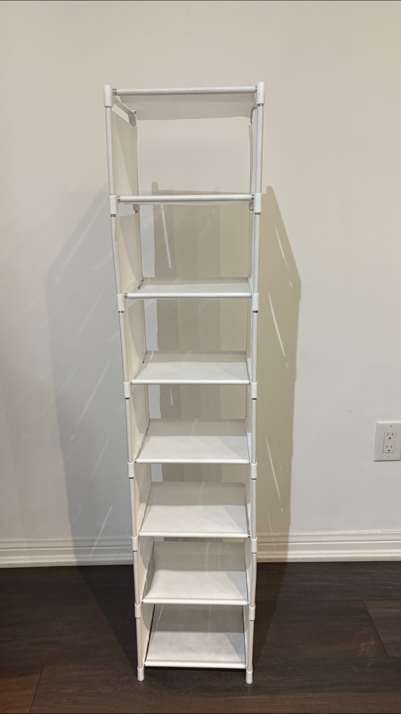Selling a white, 6-tier shelves! It's perfect for organizing your shoes or small things. Great for small spaces and easy to assemble.