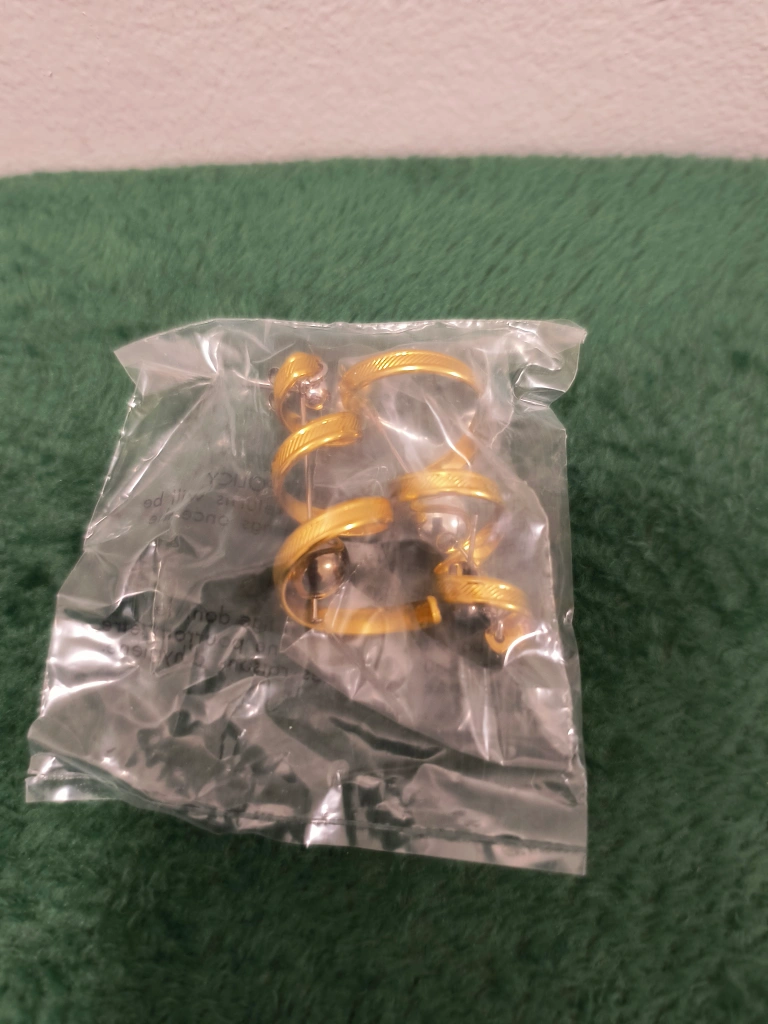 Brand new gold tone spiral earrings in original packaging! These earrings would be a great addition to your jewelry collection or a lovely gift for someone special. Stainless Steel posts