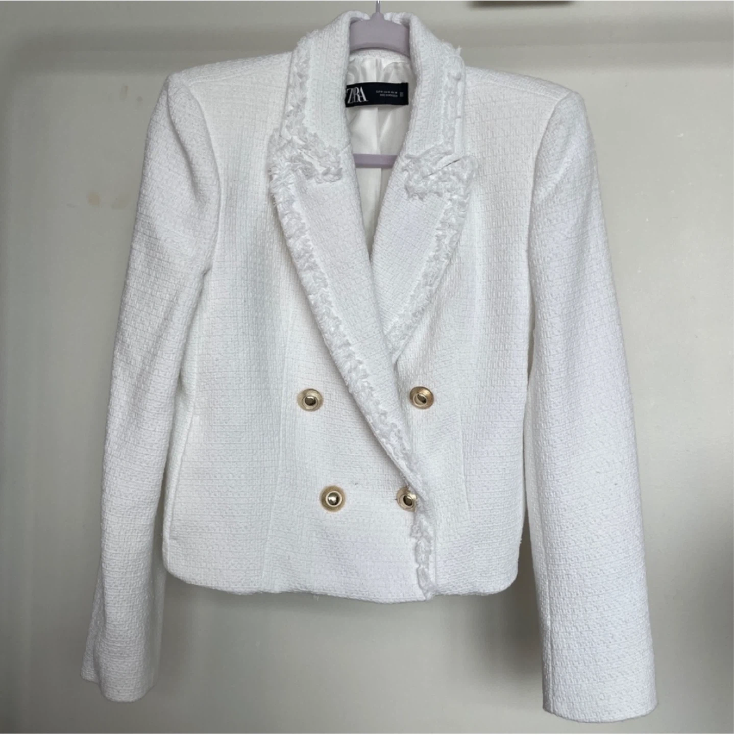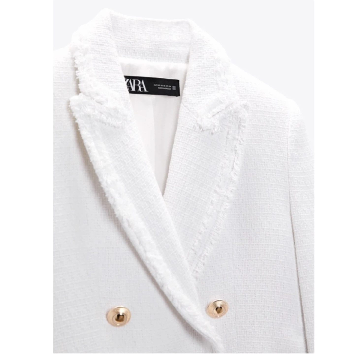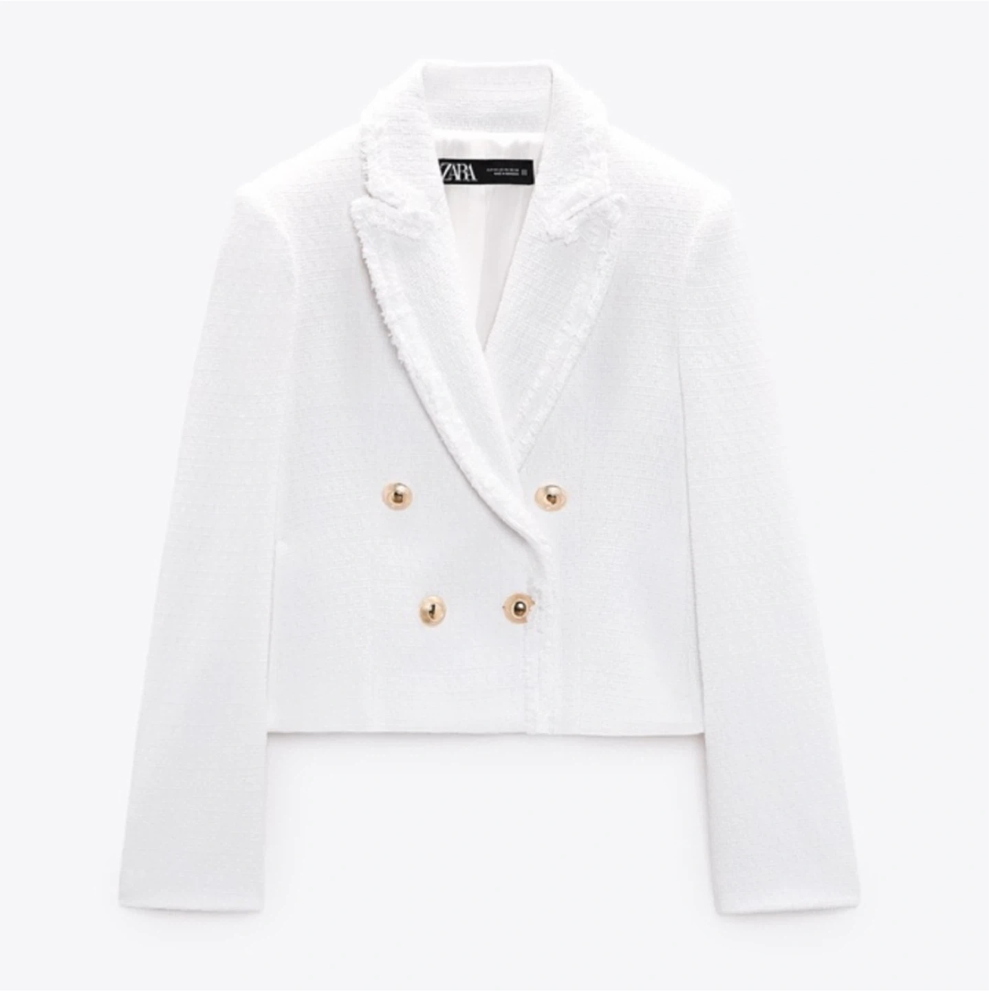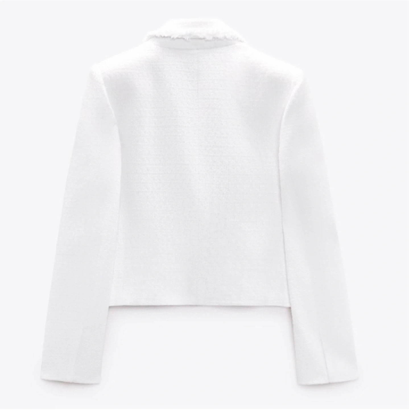 White cropped tweed jacket from Zara