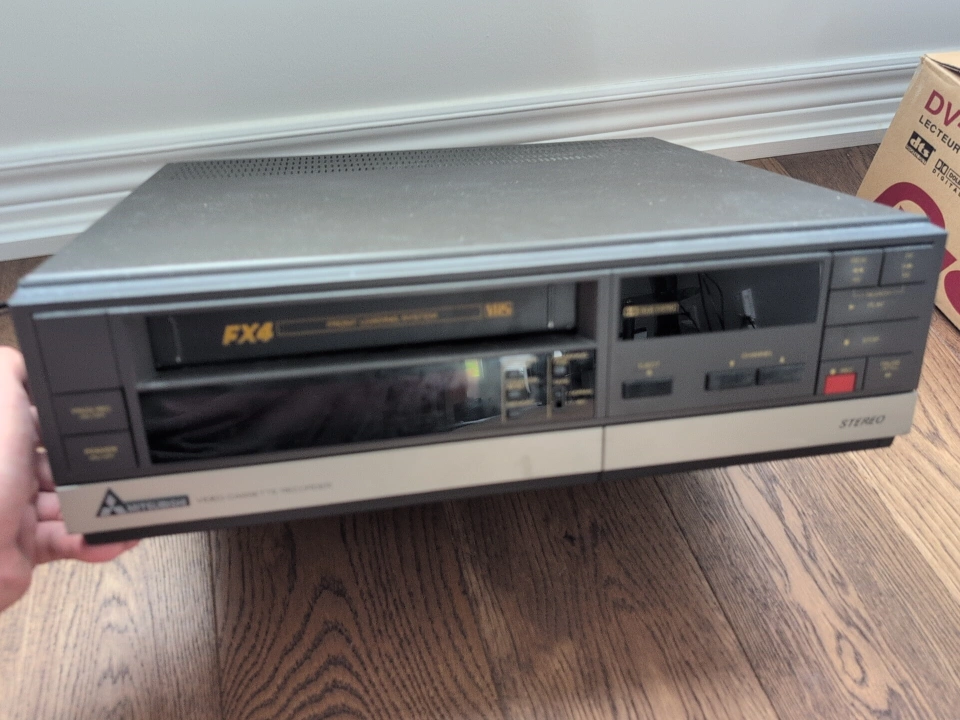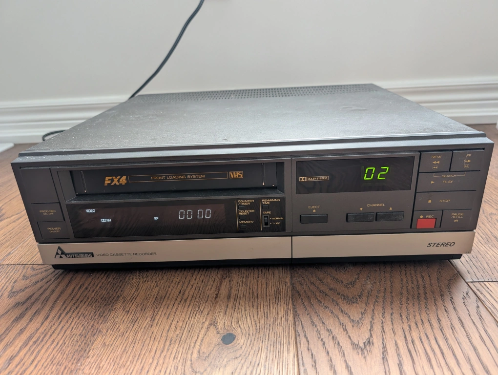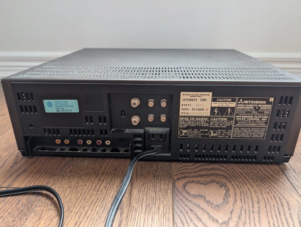 Selling a Mitsubishi HS-330UR VCR. It's a vintage piece manufactured in September 1984 in Kyoto, Japan. This video cassette recorder has a front loading system and stereo sound. Working condition. pickup at Markham intersection of 16th Ave and BurOak Shipping option available