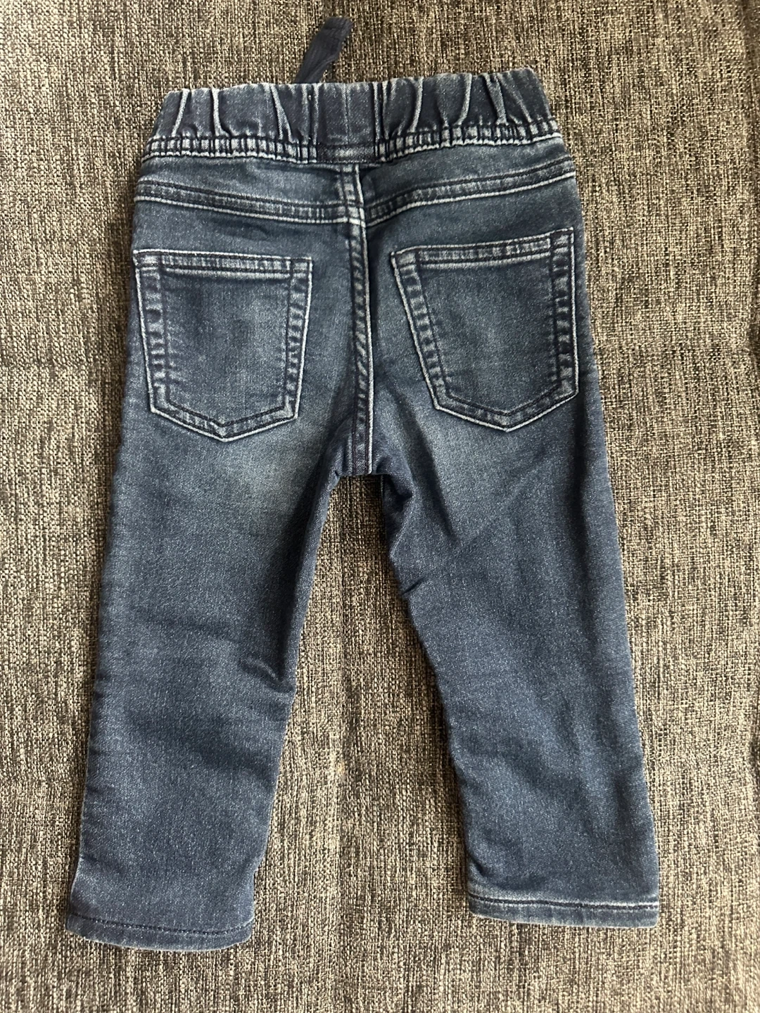 These are gently worn Gap Kids jeans in size 18-24 months, perfect for your little one's adventures. They feature a comfortable elastic waistband with a drawstring for a snug fit, and the classic denim look makes them versatile for any outfit. Priced to sell! Never used like new! * Brand: Gap Kids * Size: 18-24 months * Style: Jeans with elastic waistband and drawstring * Colour: Denim blue See my other listings for more kids' winter clothes, thank you.