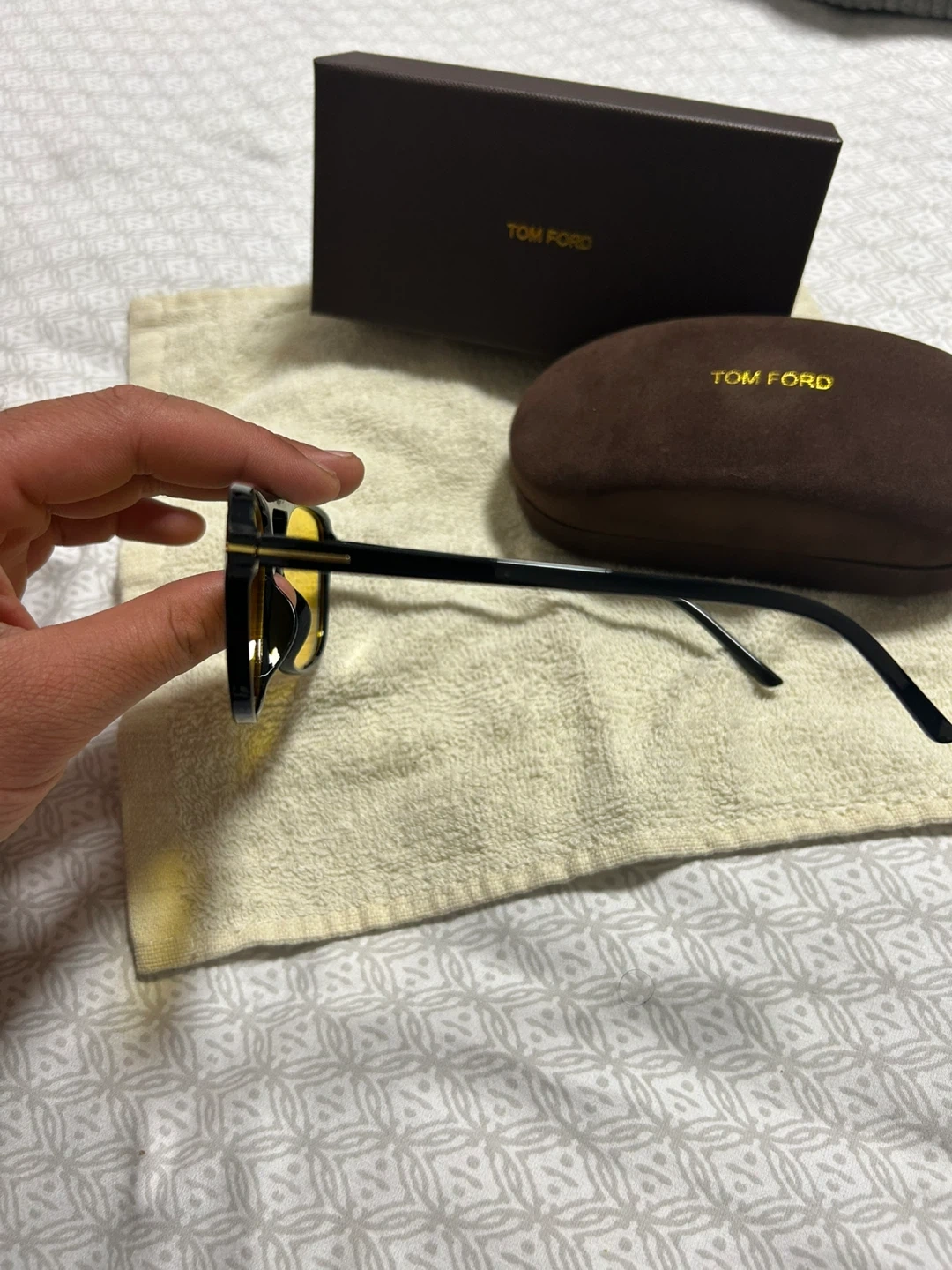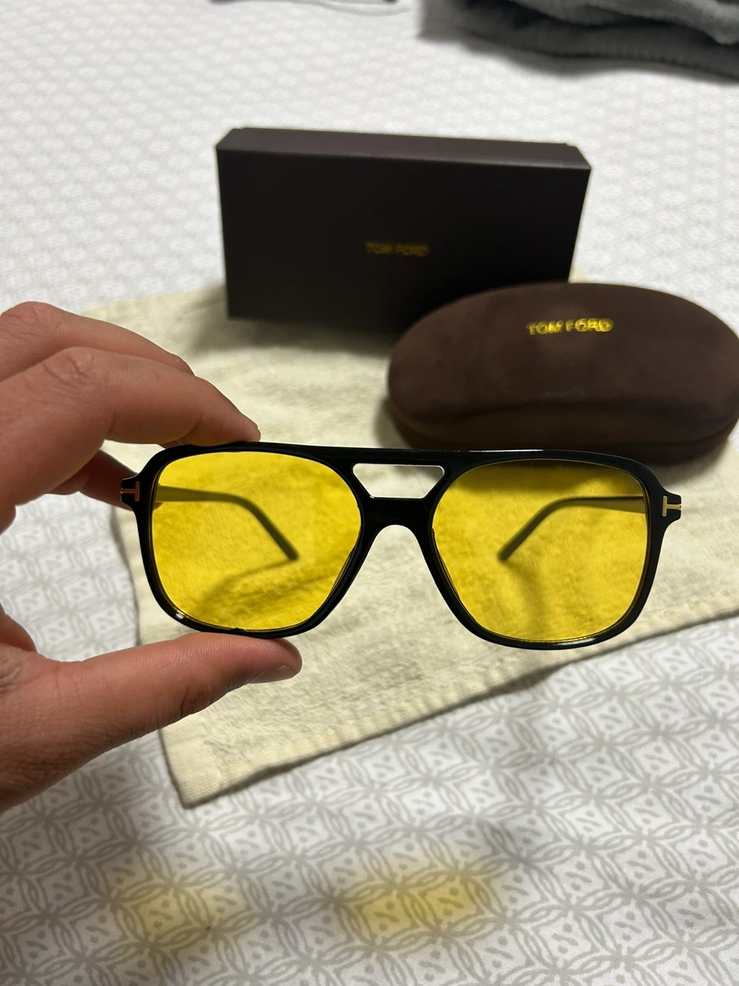 65Selling a pair of Tom Ford sunglasses with black frames and striking yellow lenses! They come with the original box and case. These sunglasses are in great condition and ready for a new home. Perfect for adding a pop of colour to your look!